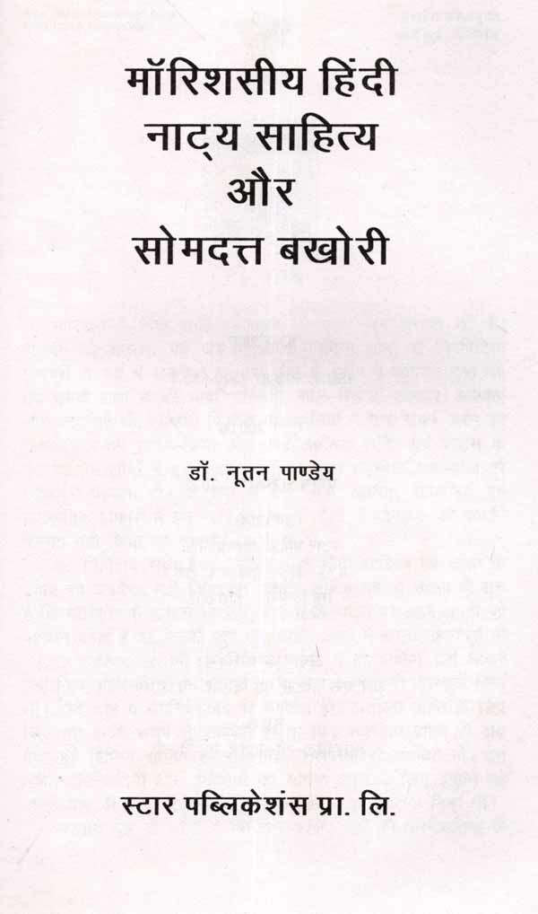 मॉरिशसीय हिंदी नाट्य साहित्य और सोमदत्त बखोरी: Mauritiusiya Hindi Natya Sahitya Aur Somdutt Bakhori