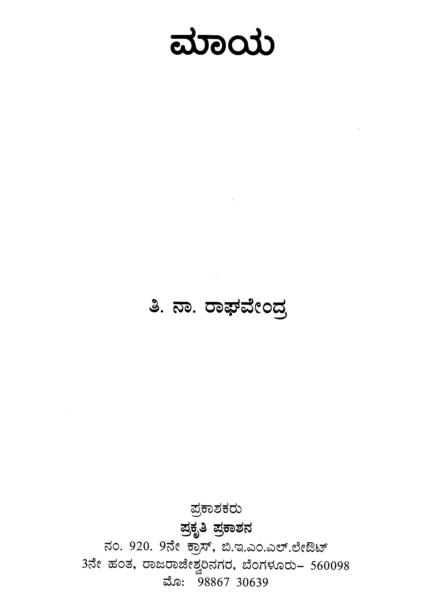Prakruthi Prakashan, Bangalore