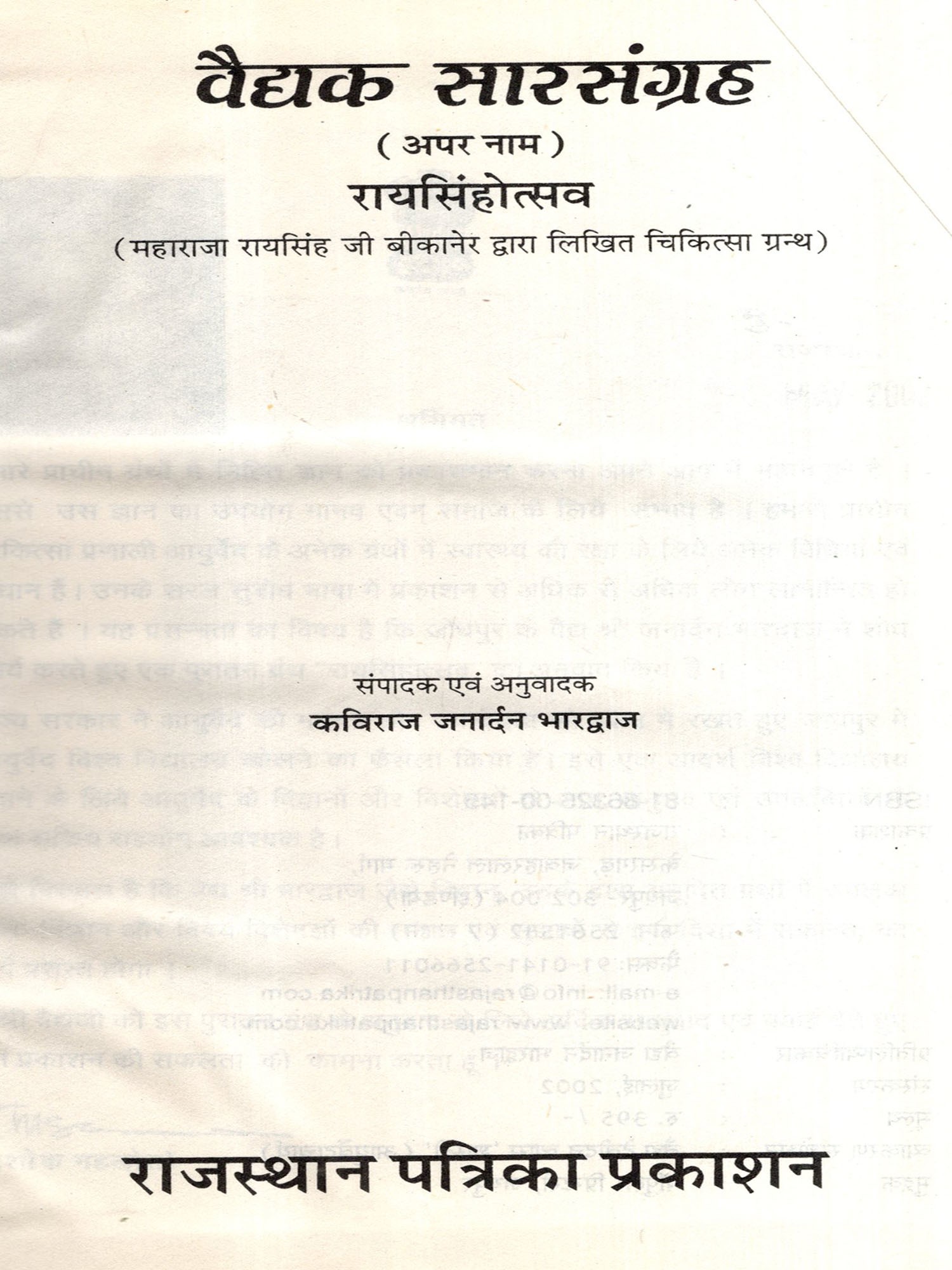 वैद्यक सारसंग्रह: Medical Compendium- Other Name:Raisinghotsav (Medical Treatise Written by Maharaja Rai Singh of Bikaner)