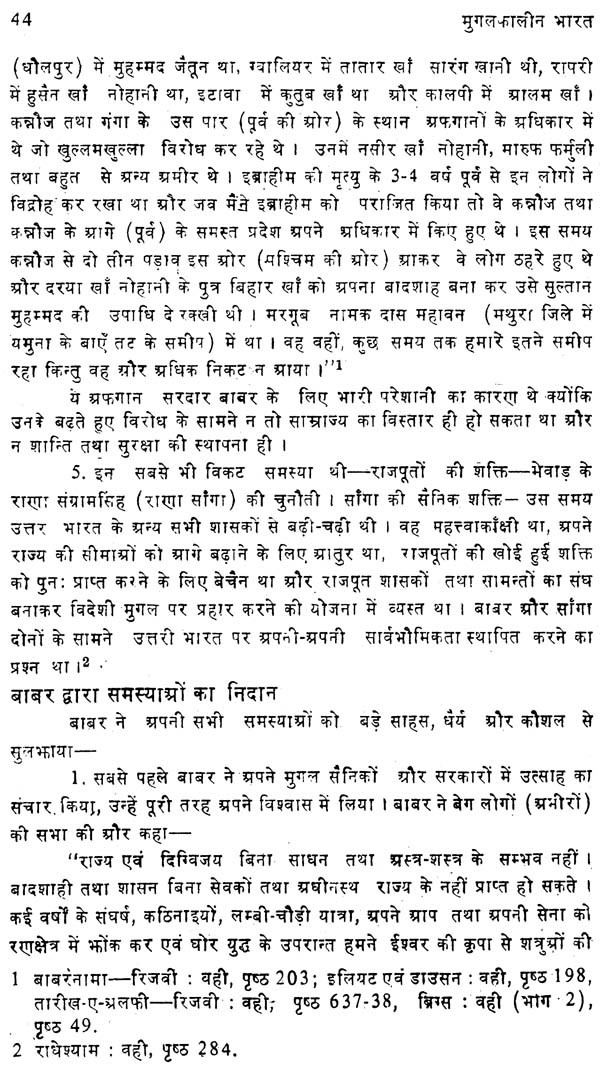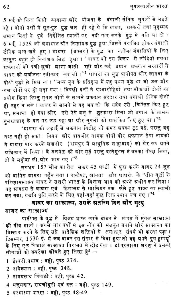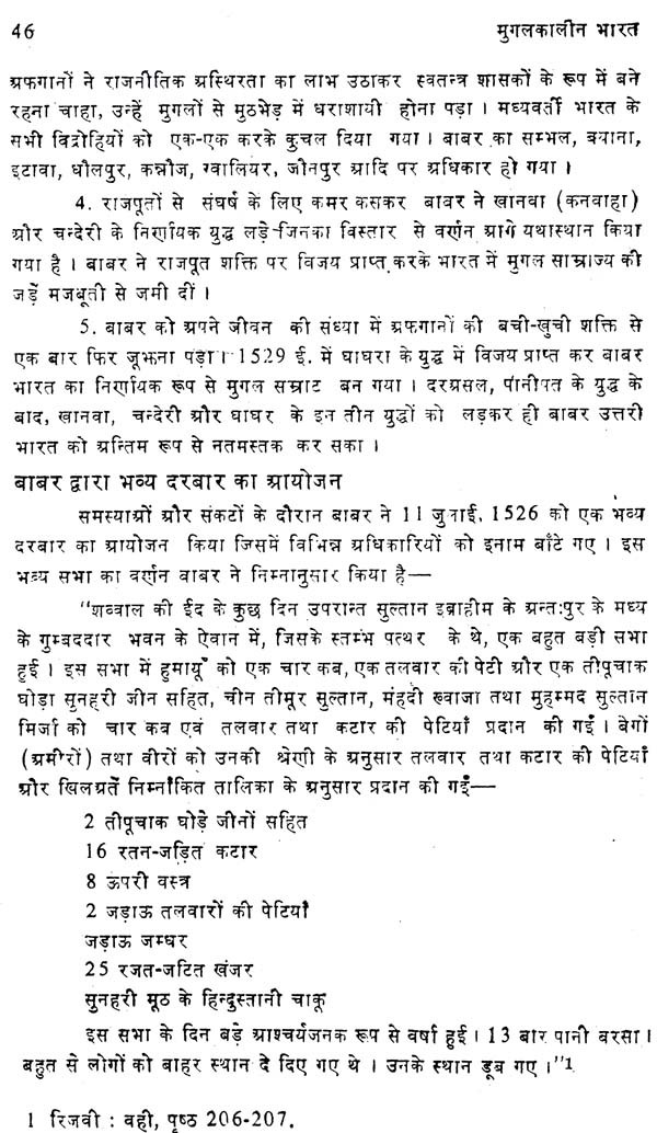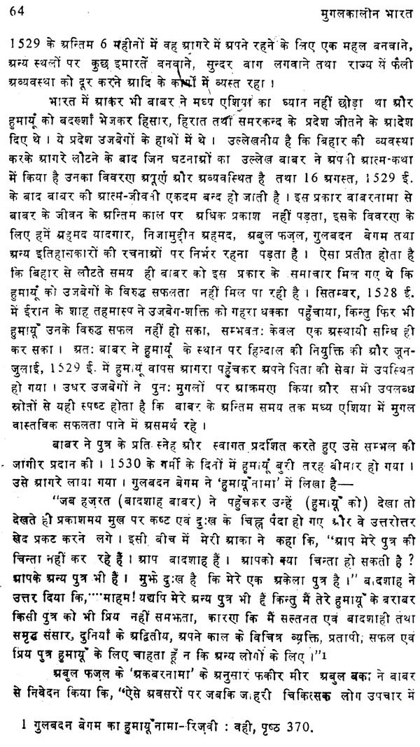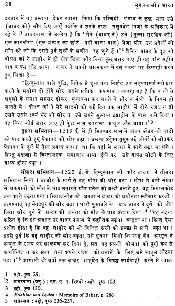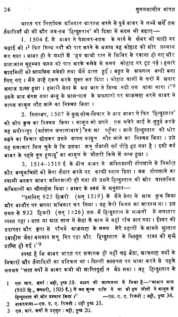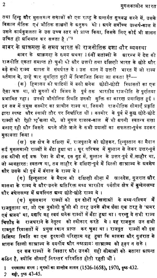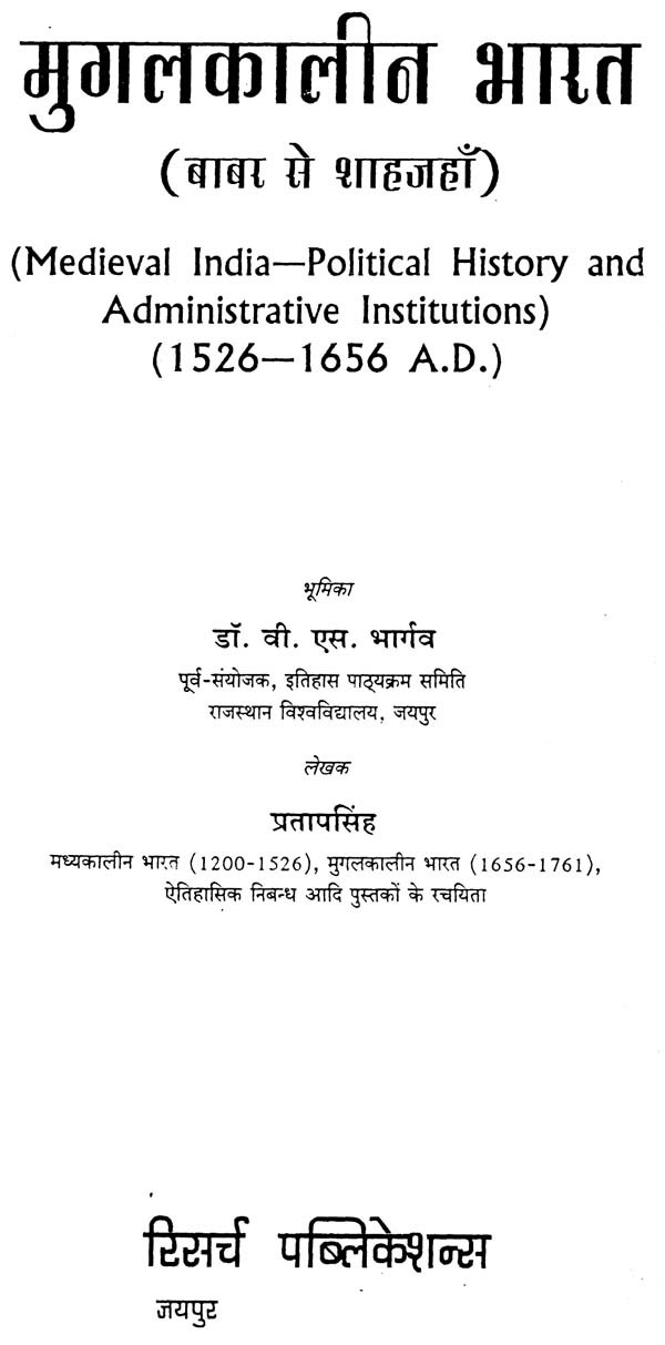 'मुगलकालीन भारत' को लेखक ने कठिन परिश्रम के साथ लिखा है। लेखन-कार्य करने से पूर्व प्रायः समस्त उपलब्ध प्रकाशित सामग्री का अध्ययन कर उपयोग किया ाया है। बर्तमान समय में जो निम्न स्तरीय प्रकाशन हो रहे हैं और जिनकी वजह से शैक्षणिक स्तर निरन्तर गिरता जा रहा है, उस अभाव की पूति इस ग्रन्थ के द्वारा की गई है। मेरा विश्वास है कि बी. ए. (आनर्स) तथा एम. ए. (इतिहास) के विद्यार्थी इस पुस्तक से अवश्य लाभान्वित होंगे । स्नातक स्तर के प्रतिभावान छात्र इस पुस्तक को वर्तमान में उपलब्ध सभी पुस्तकों की तुलना में अधिक उपयोगी पाएँगे ।