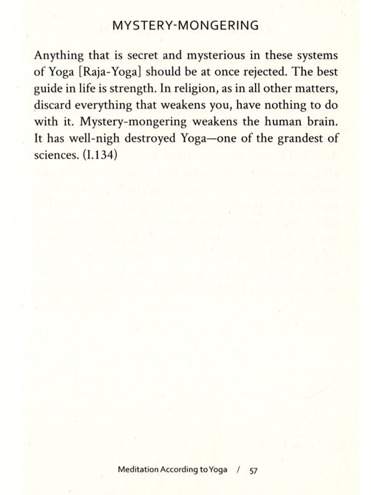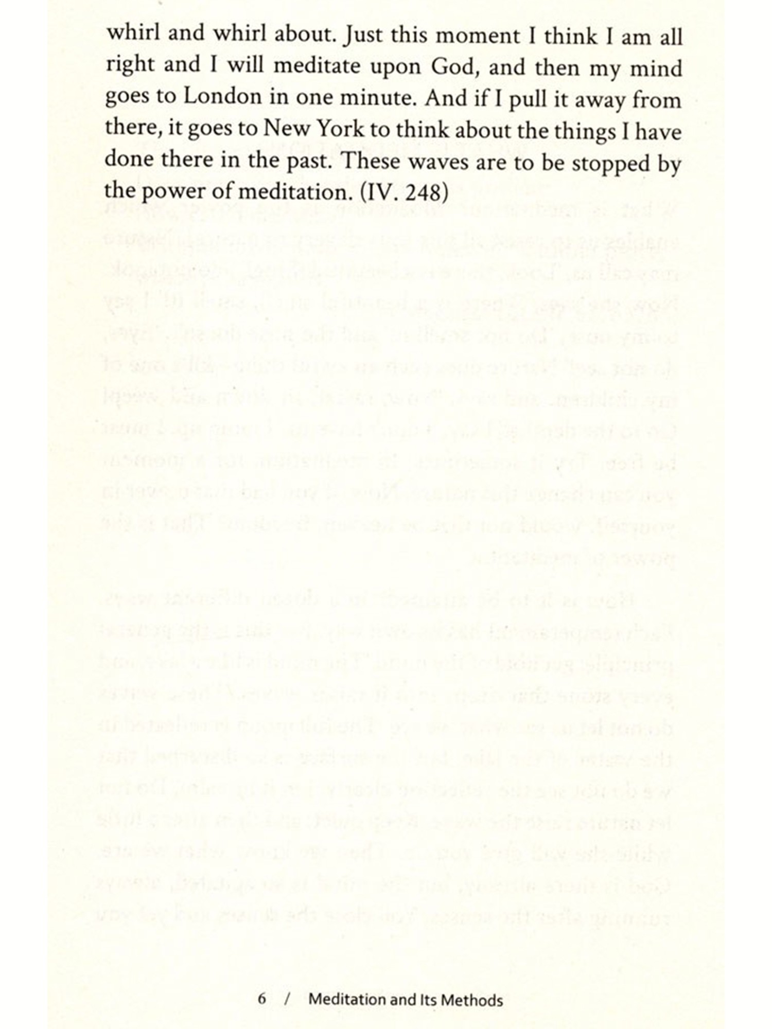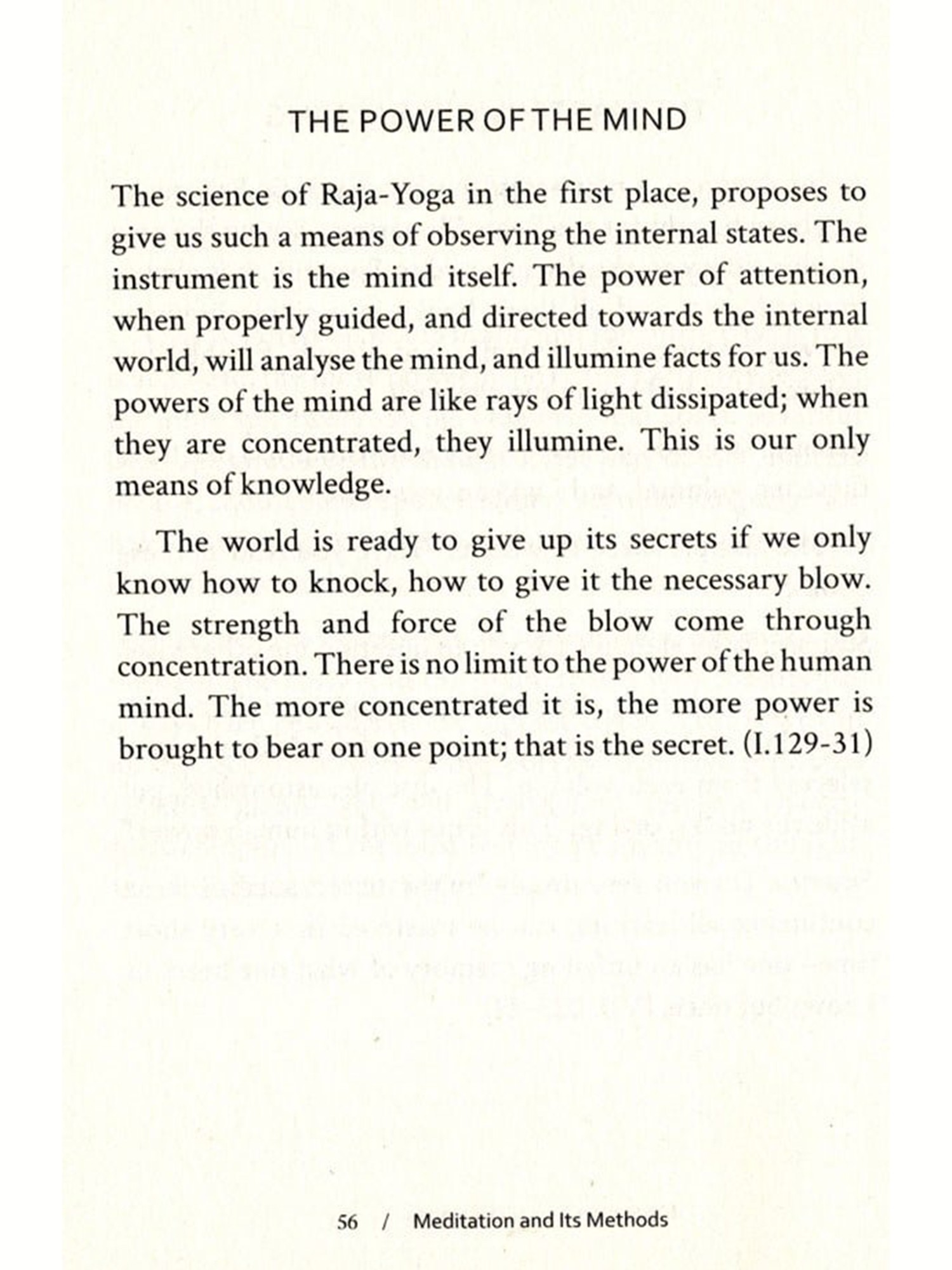Meditation is considered one of the most essential components in spirituality and used as a means to attain enlightenment. In this book, Swami Vivekananda, one of the most celebrated spiritual leaders of India, provides an introduction to meditation, its different methods, its power, and how it can bring enlightenment, happiness and peace to our lives. He delves deeper into the concept through two approaches-meditation through Raja Yoga by controlling the mind and through understanding the oneness of the soul and brahma as has been practiced in Vedanta philosophy. The simple yet effective techniques provided in this book can bring one balance of mind, body, and soul thereby bringing a sense of calmness and equanimity.