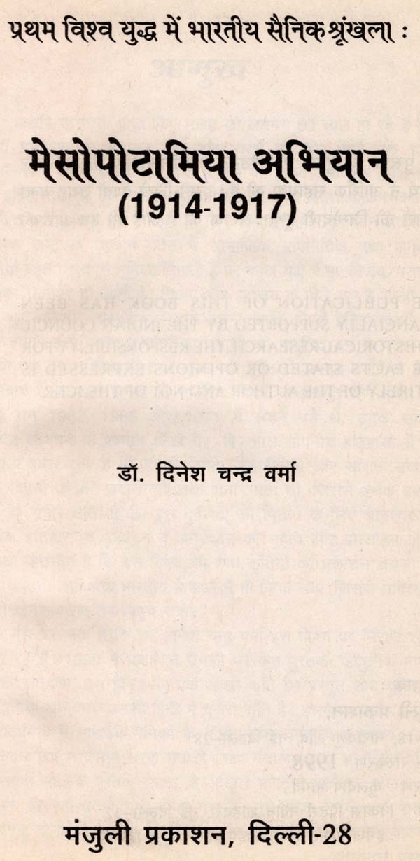प्रस्तुत पुस्तक लेखक की विस्तृत योजना, जिसमें वह प्रथम विश्व युद्ध में भारतीय सैनिकों की भूमिका का पांच खण्डों में वर्णन करना चाहता है, का एक भाग है। यह योजना भारतीय इतिहास अनुसंधान परिषद द्वारा स्वीकृत है तथा इस प्रथम खण्ड के अध्ययन में लेखक कृतज्ञतापूर्वक परिषद द्वारा प्रदान की गई आर्थिक सहायता के प्रति आभार प्रदर्शित करता है।