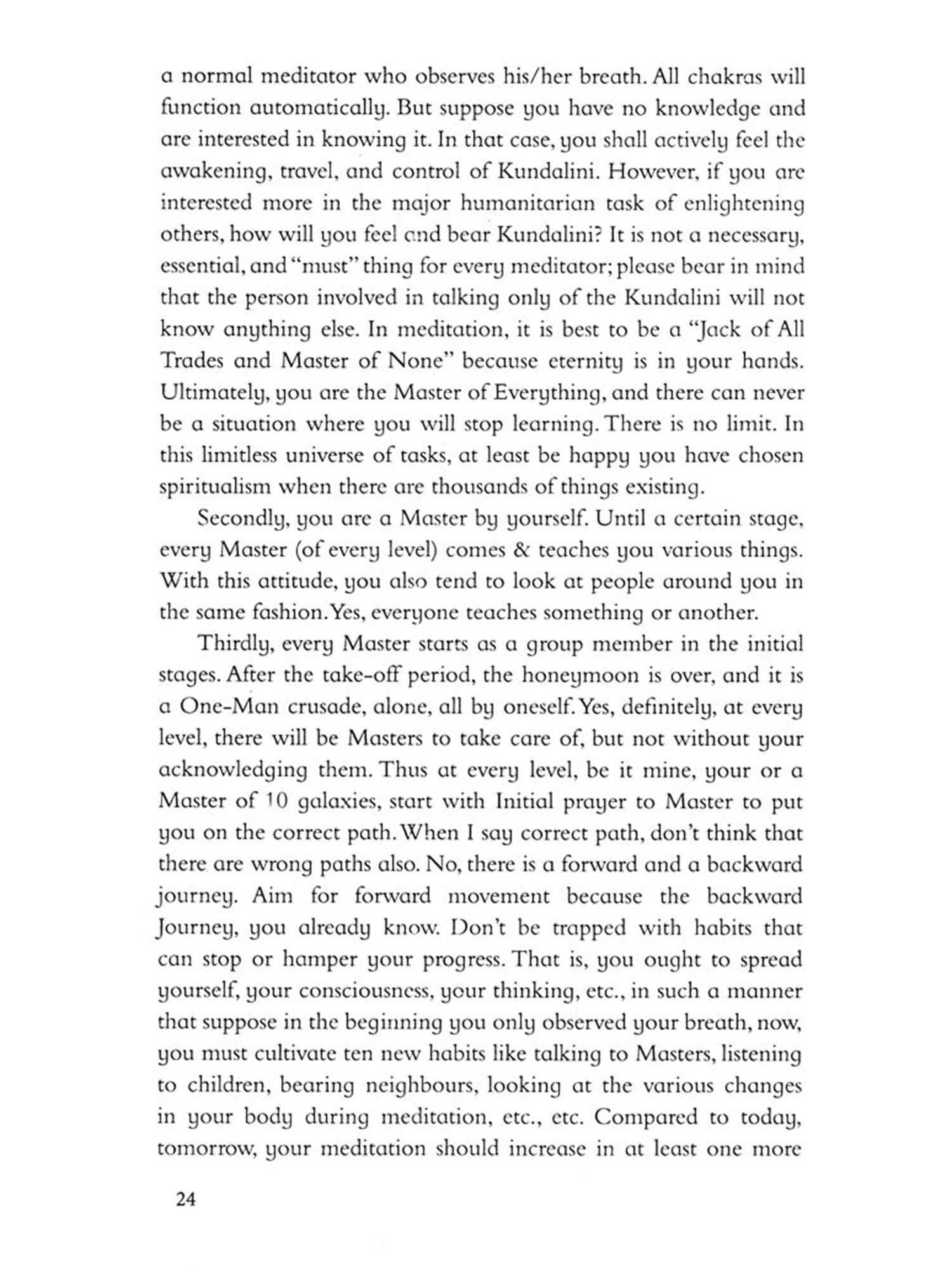 The most amazing fact was that I knew not what I was to write. Still, after a few seconds, a few words would creep into my head out of somewhere, exist only as long as I write those words, and once registered, again, a new series of talks would come into my brain. In this way, I got my first message on meditation and enlightenment. It was wonderful, and it helped me to establish myself as an Auto-writer in the field of Spirituality It enhanced my interest in meditation and reading books, writing Masters' messages, getting instructions, and learning to implement whatever suggestions that each Master gave. In my journey, I have learned that all the past Great Personalities and Masters were just like us, very normal in their routine lives. But, through perseverance in Spirituality, they became great and key personalities for all of us to know of and learn from.