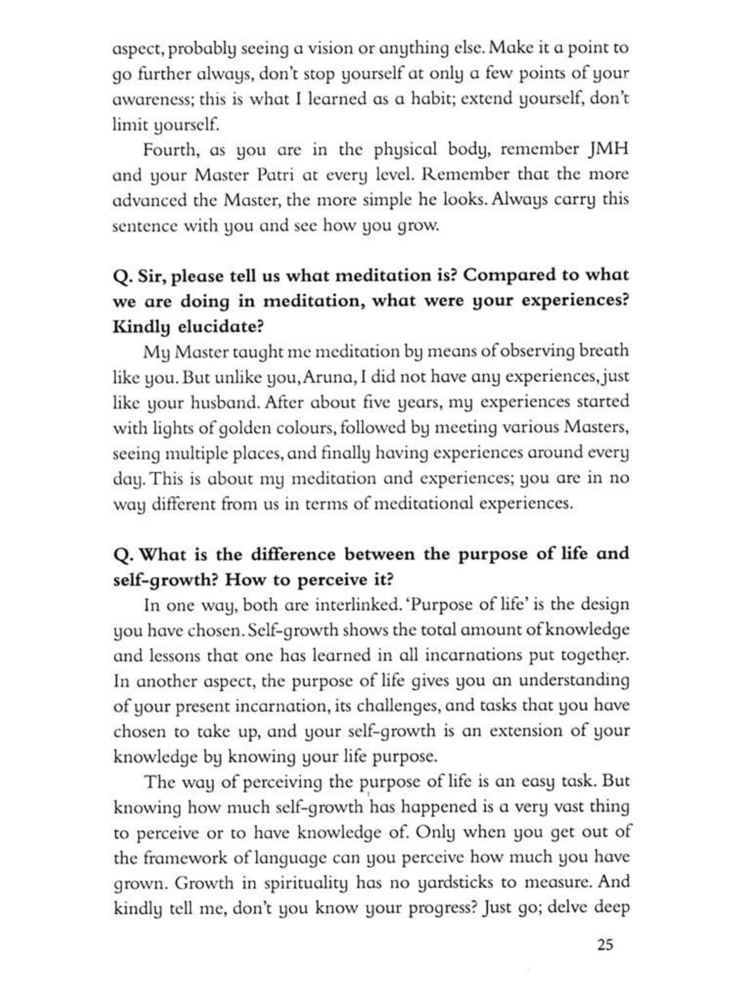 The next step was when I started having meditational experiences of seeing Masters and talking freely to them. It was in these experiences during meditation that Masters started giving me papers and pens. I asked my Master. ""Please enlighten, what is all this? Why is every Master giving me papers and pens?"" Then, he simply said, ""You should start Auto-writing.""