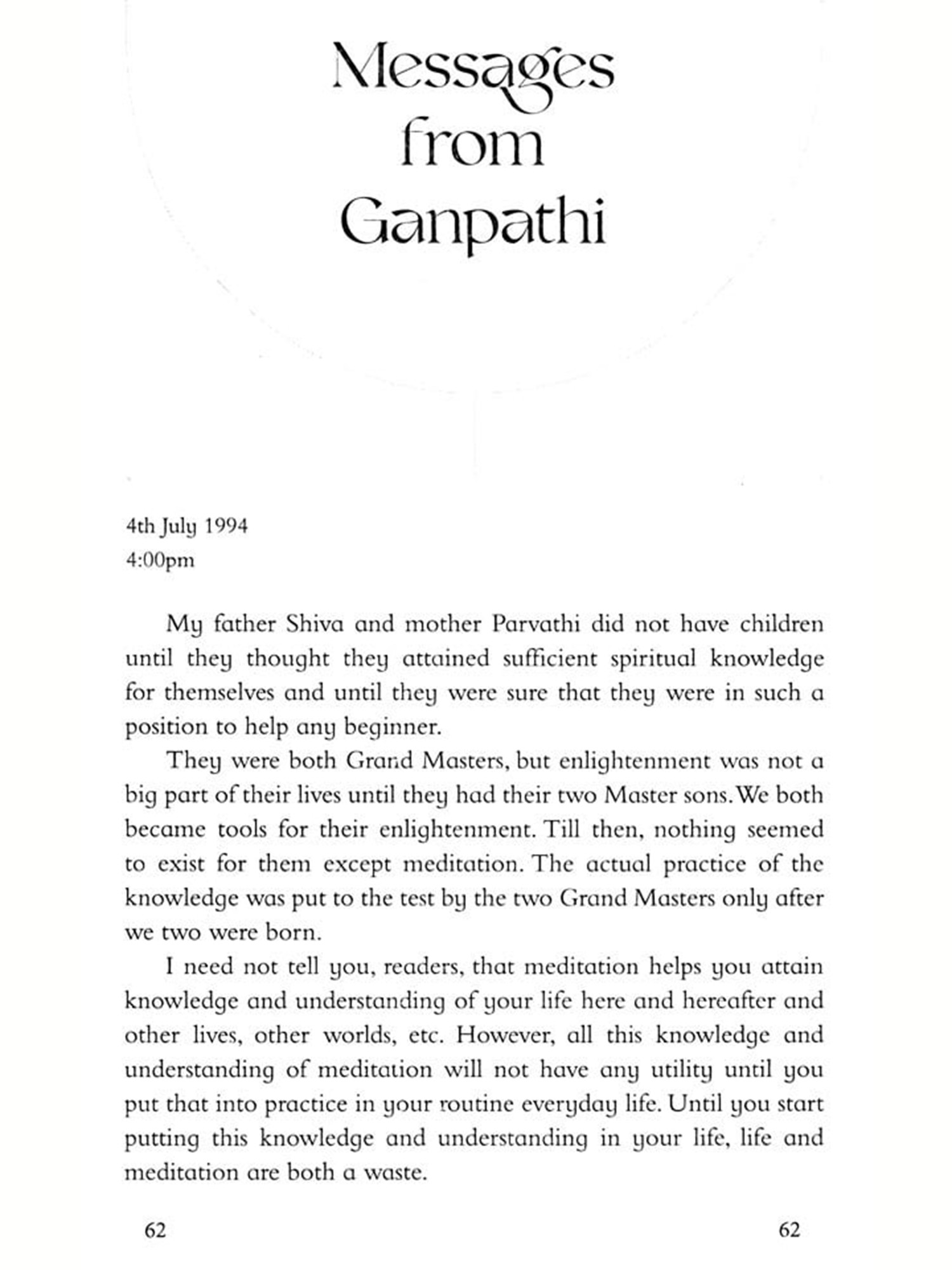 It all started on 11th January 1993, at about 11 a.m. While meditating, a Master appeared and earnestly asked me to write for him immediately. The whole room was filled with so much energy, vibrations. My mental condition was so very different and altered. My questioning nature into the whole experience, very surprisingly, did not arise even for a single moment during the entire 45 minutes of writing.