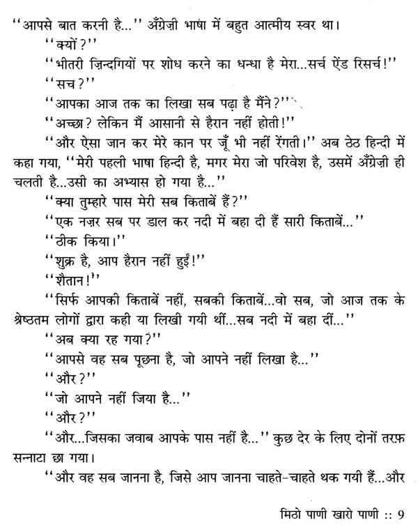 प्रस्तुत उपन्यास ' मिठो पाणी खारो पाणी' सिन्ध के पाँच हप्तार साल के इतिहास को छोटे-छोटे टुकड़ों में सैंजोकर उत्तर-आधुनिक पैश्टिच शिल्प में लिखा गया है-जहाँ इतिहास, समाजशास्त्र, मनोविज्ञान, सांस्कृतिक इतिहास आदि विभिन्न विधाओं की आवाजाही एवं अन्तर सम्बद्धता बनी रहती है। पोस्ट माडर्निस्ट इंटरटेक्स्चुअलिटी की तरह इसकी यही विशेषता इसे हिन्दी भाषा में उत्तर हिस्टयोग्राफिक आधुनिक उपन्यासों की श्रेणी का मेटाफिक्शन की मान्यता प्रदान करता है। इसकी यही विशेषता एवं शक्ति इतिहास में जाकर अपने समय एवं सत्ता को न सिर्फ ललकारती है वरन उसे मुठभेड़ की चुनौती भी पेश करती है।