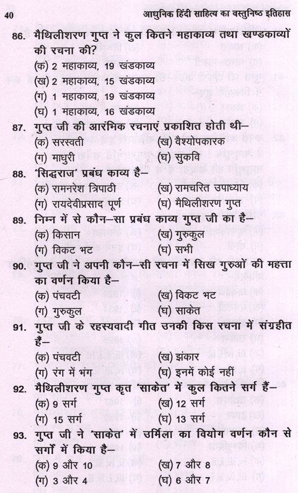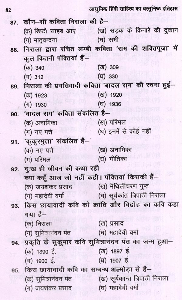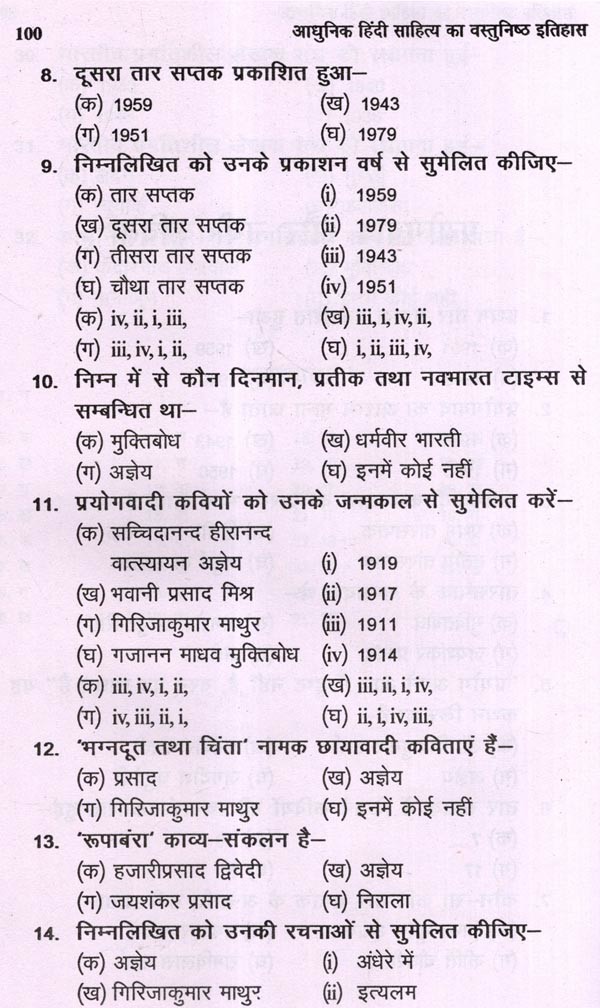 हिन्दी साहित्य का आधुनिक काल (वस्तुनिष्ठ प्रश्नोत्तर): Modern Period of Hindi Literature (Objective Type Questions)