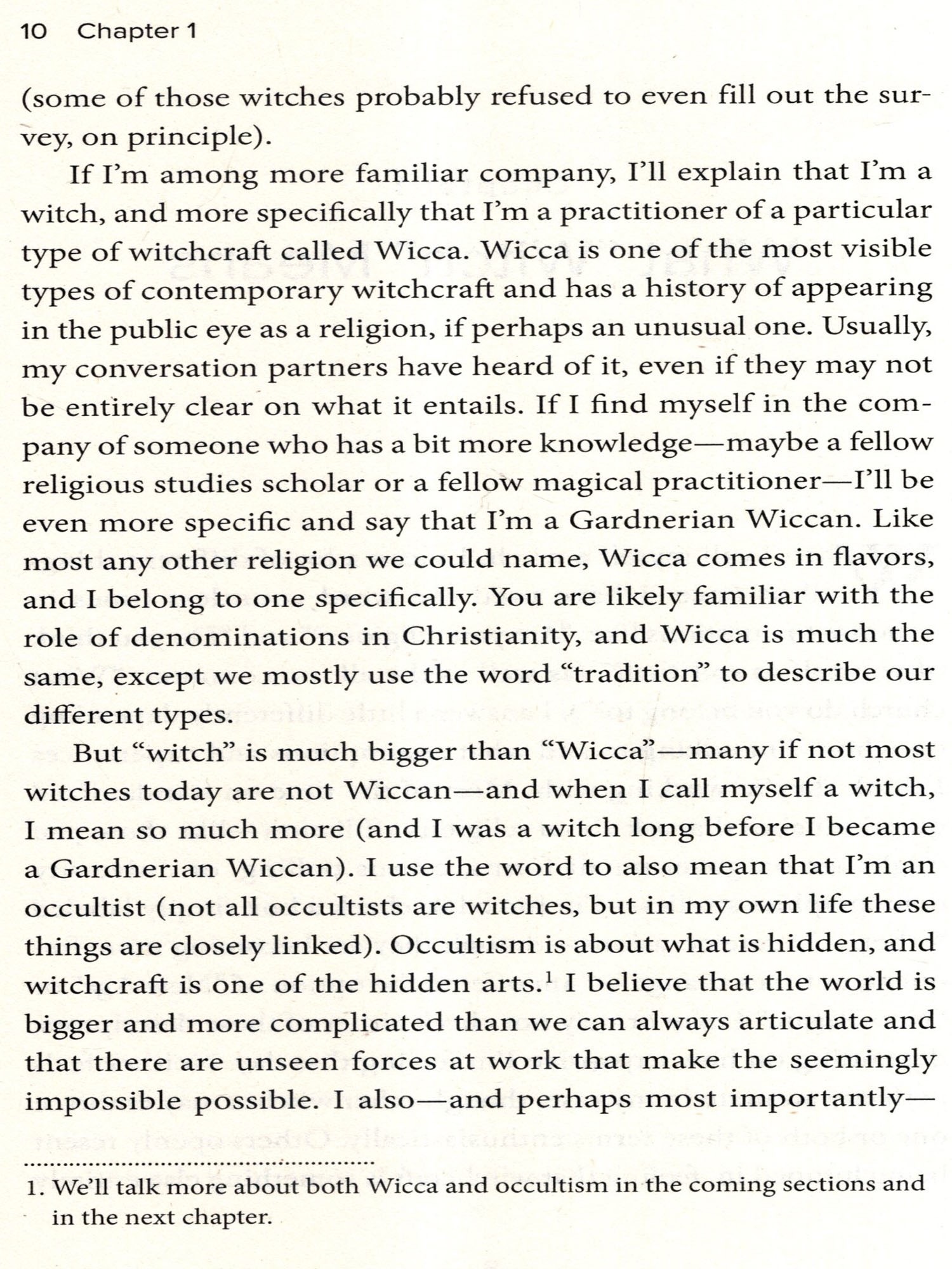 In most ways I look very conventional from the outside. I was raised by a nice family in an American suburb, graduated from a state university, and entered the workforce. I've variously been a classroom teacher, a retail worker, a corporate office employee, and a graduate student. Most of the people I've met in these realms would not suspect that I have another life entirely. I began exploring the world of magic, witchcraft, and the occult as a youngster, driven-like many children-by an interest in mythology, fantasy, and storytelling. As a teenage girl, I was introduced more seriously to witchcraft through a combination of television and movies (the nineties were something of a hotbed for witch depictions) and the influence of equally fascinated friends. The witchcraft books we were reading promised that witchcraft could improve our personal lives, help us connect to the cycles of nature, and tap into extraordinary magical abilities. By the time I entered college, I identified as a witch and had aspirations to take on leadership positions in the magical com-munities I was frequenting. I participated in a campus Pagan student club, attended open rituals at a local metaphysical store, and spent the summers traveling to magical festivals. I would in short order become an initiate in a coven, then many years later a high priestess, and finally a coven leader in my own right. I practiced spells, led night-time rituals, spoke to spirits and gods, and performed secret rites passed to me by a line of magical elders.