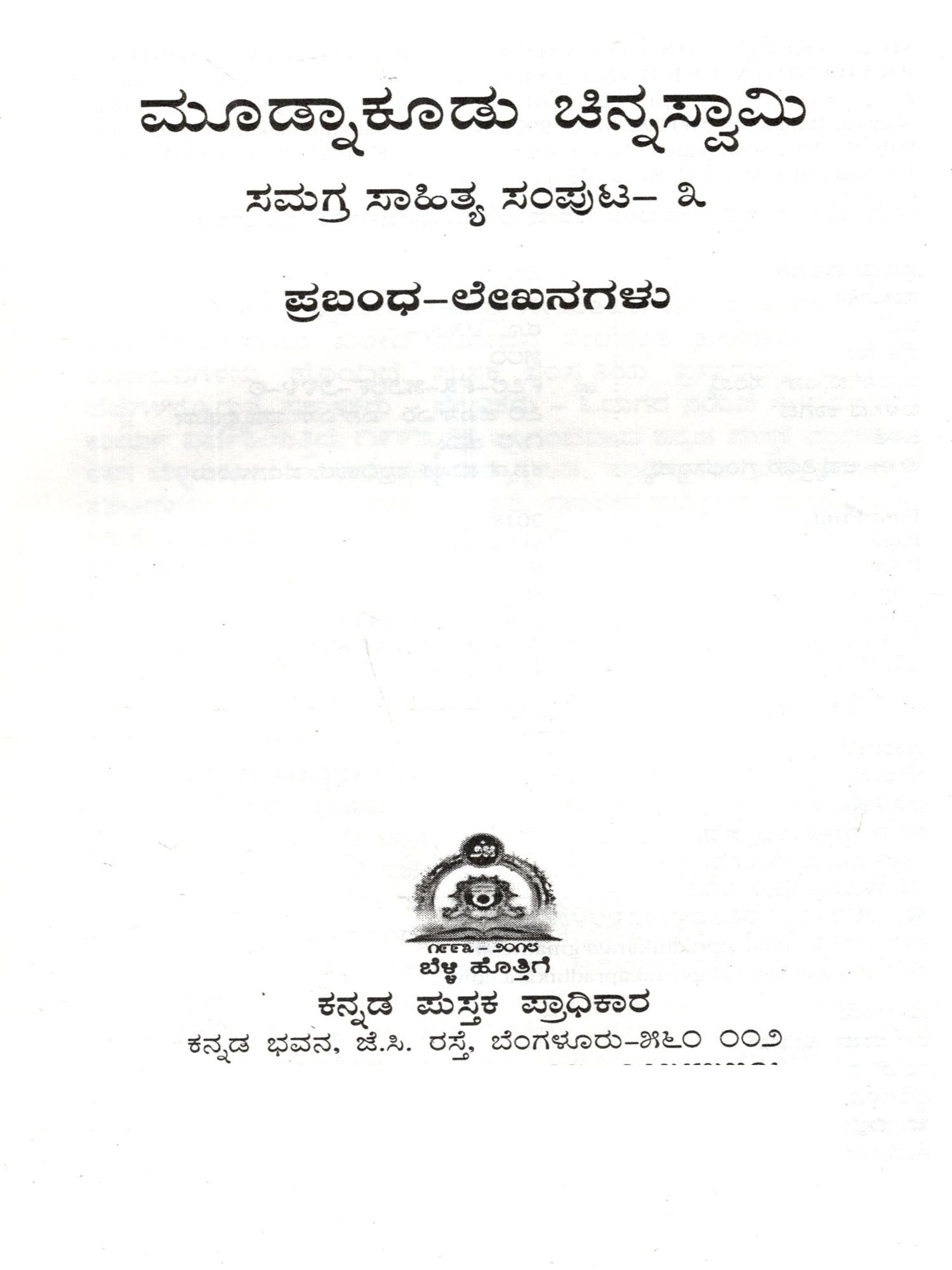 ಮೂಡಾಕೂಡು ಚಿನ್ನಸ್ವಾಮಿ ಸಮಗ್ರ ಸಾಹಿತ್ಯ : Mudnakudu Chinnaswamy Samagra Sahitya Samputa Sankeerna- Vol- 4 (Kannada)