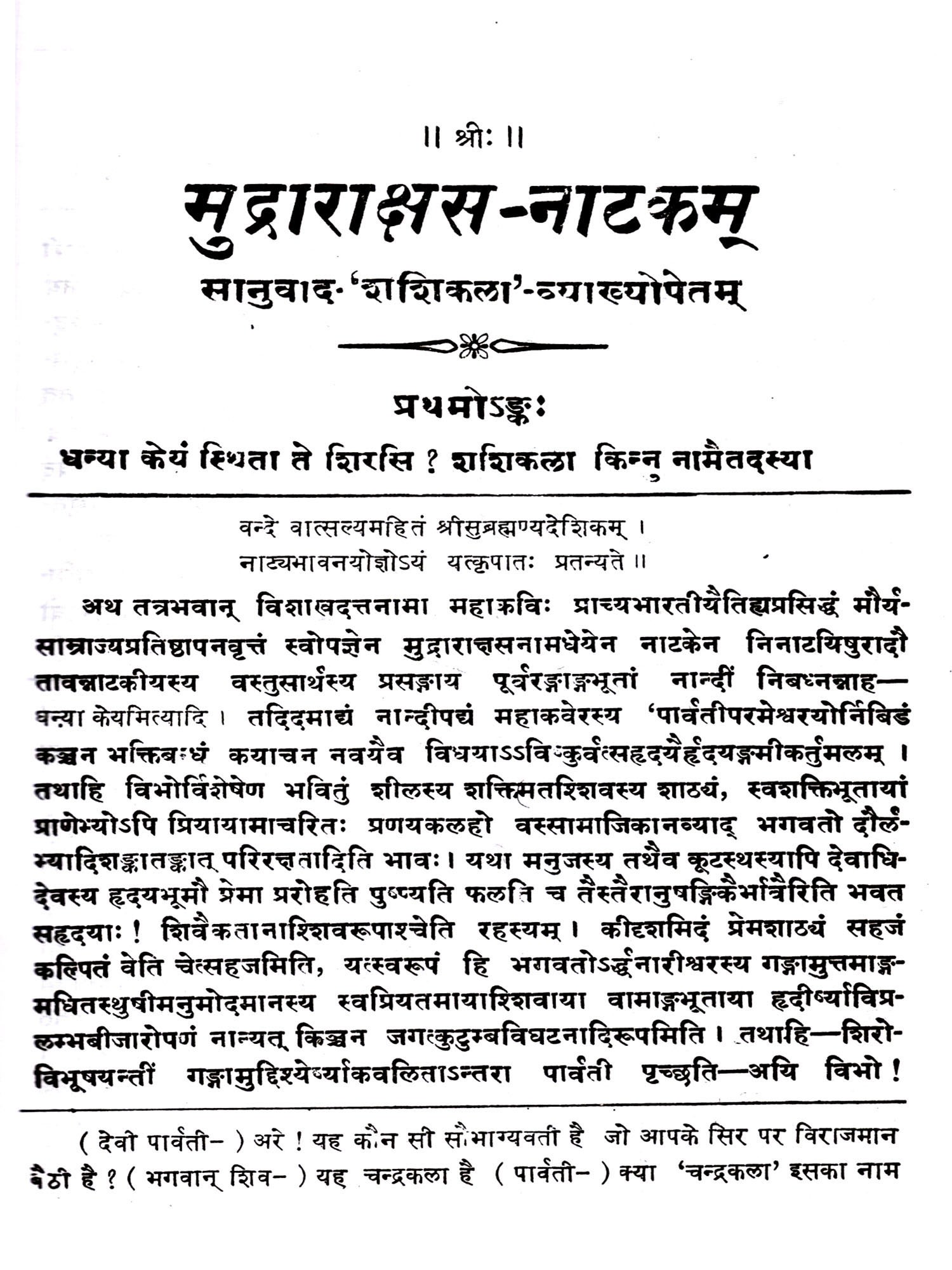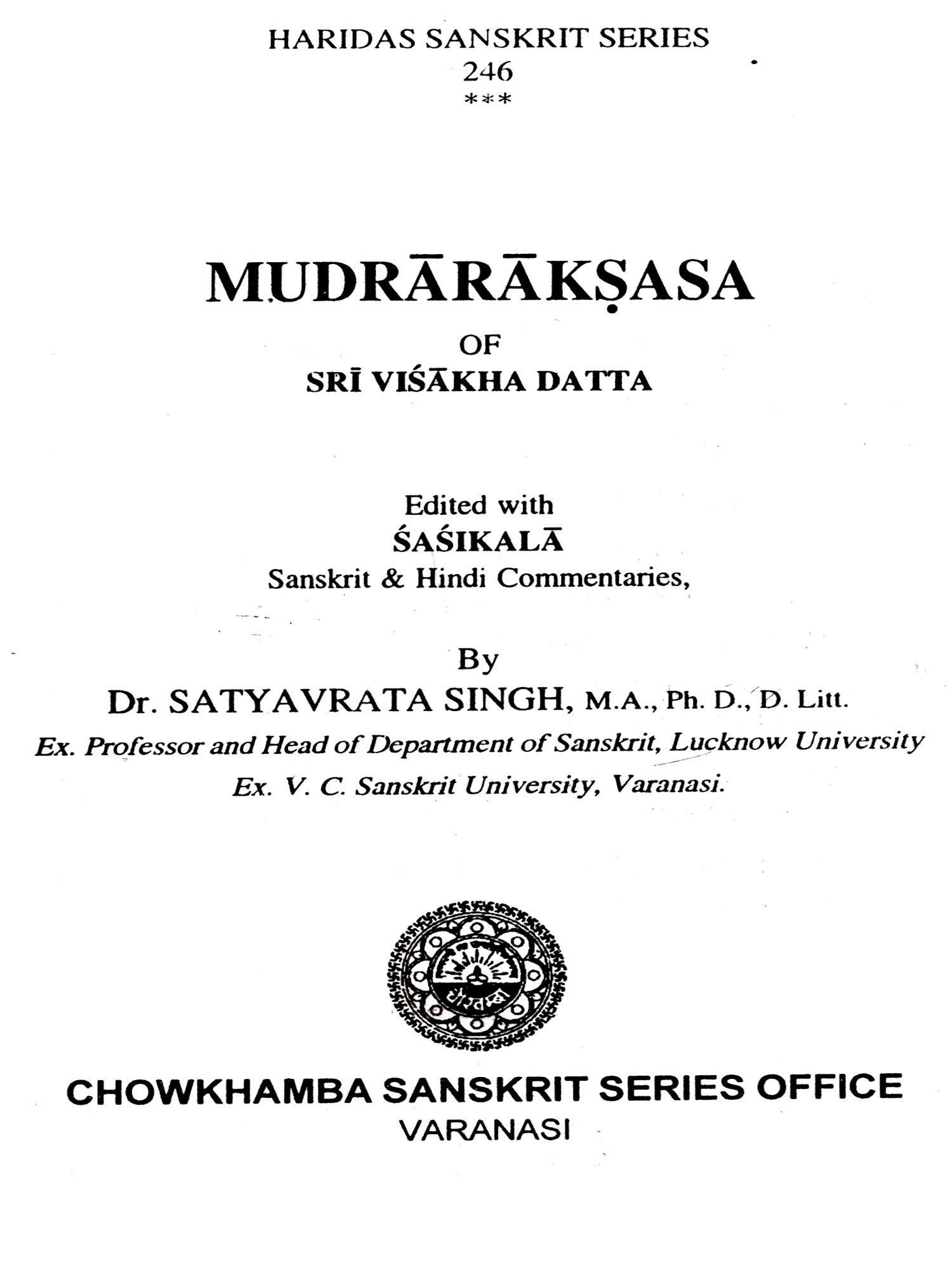 मुद्राराक्षस-नाटकम्: Mudraraksasa of Sri Visakha Datta Edited- with Sasikala Sanskrit & Hindi Commentaries,