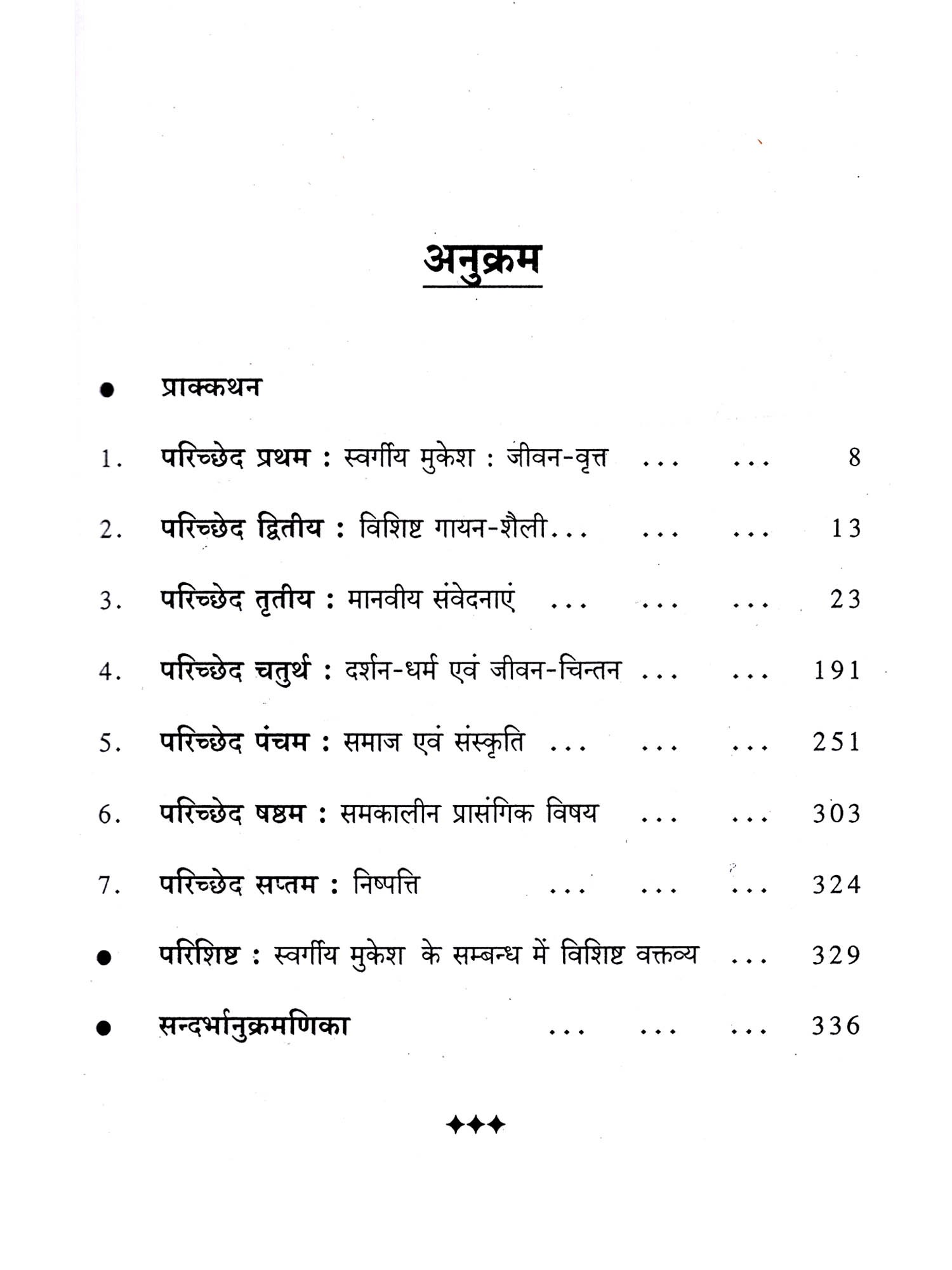 स्वर्गीय मुकेश हिन्दी फिल्म संगीत की सुप्रसिद्ध गायक त्रयी के आधार स्तंभ रहे हैं। दर्द के गीतों के बेताज बादशाह एवं भावप्रवण गायन में सिद्धहस्त होने के समानान्तर संख्या के स्थान पर गुणवत्ता पर बल दिए जाने के कारण उनके अधिकांश गीत पर्याप्त विशिष्ट तथा सामयिक संदेश से परिपूर्ण रहे हैं। साथ ही उनकी साहित्यिक उत्कृष्टता भी अनेकशः स्पष्ट होती है। रचनाकार की रचना के प्रति यथार्थ न्याय करते हुए गीत के मर्म को परखकर हृदयस्पर्शी स्वर के माध्यम से हृदयों से जुड़ी जनता की आवाज़ मुकेश के पास ही थी। इसी कारण राष्ट्रीय और अन्तर्राष्ट्रीय लोकप्रियता के अर्जन के साथ सर्वाधिक सदाबहार एवं सफल गीतों में उनकी ही सहभागिता रही। प्रस्तुत शोध में उनके व्यक्तित्व-कृतित्व के संक्षिप्त परिचय के समानान्तर उनके सुर-संसार में मानवीय संवेदनाओं, मन-जीवन की भाव-प्रतीतियों, समाज-संस्कृति, धर्म-दर्शन के विविध पक्षों एवं प्रासंगिक विषयों का अनुसंधान करते हुए तथ्यात्मक व्याख्या-विवेचन प्रस्तुत किया गया है।