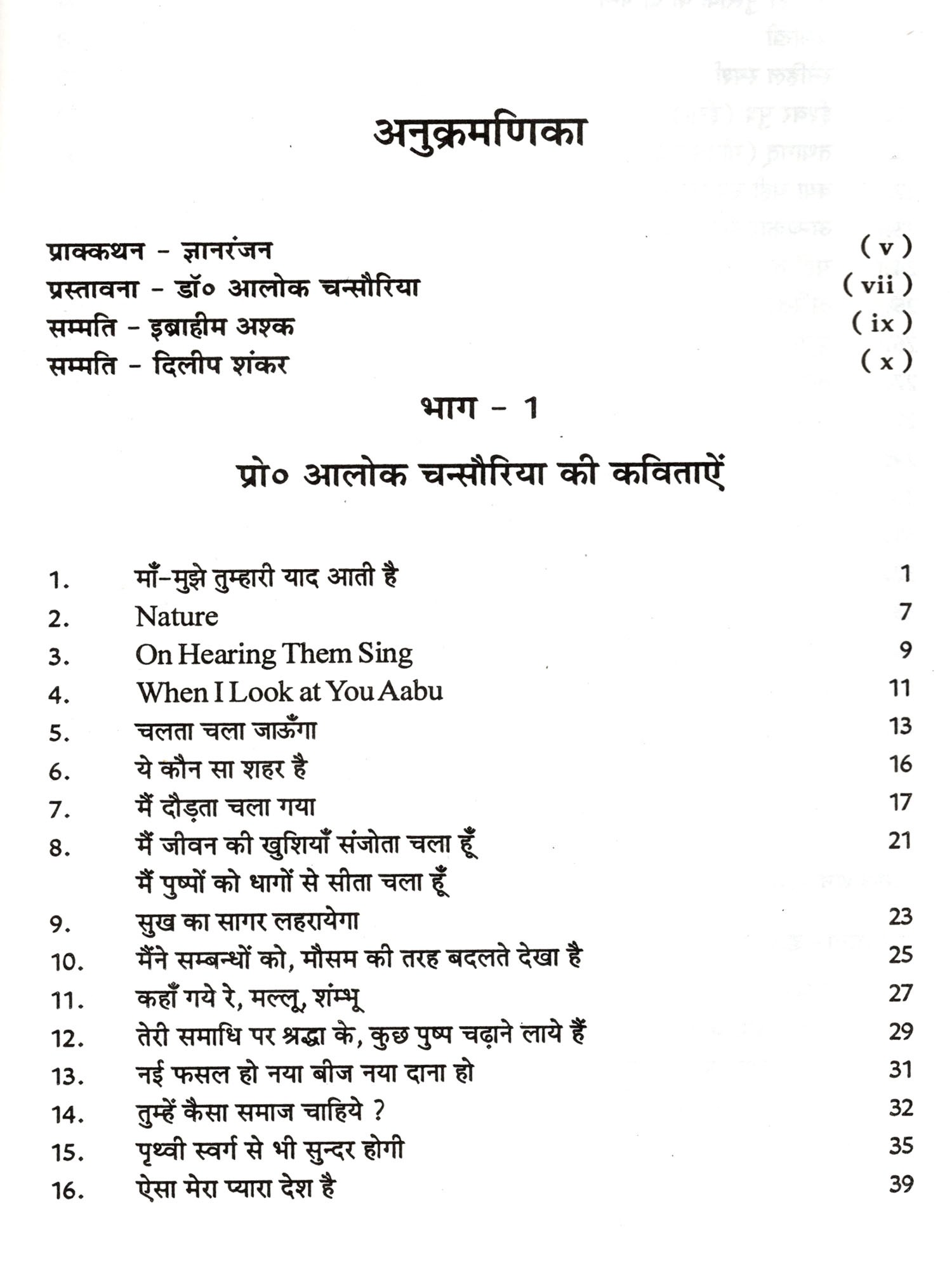 आलोक चंसोरिया हिन्दी और अंग्रेजी में निष्णात हैं, उनके पूर्वज और अभिभावक बौद्धिक क्रियाकलापों में सक्रिय और चितेरे रहे हैं। उन्होंने नाट्य शास्त्र और उसकी परम्पराओं पर विशद अध्ययन किया है। वे शिक्षा के केन्द्र में हैं और समकालीन दुनिया से उनका गहरा नाता है। पर मेरे लिये भी यह विस्मयजनक है कि उनके व्यस्त जीवन में कविता का भी एक कोना है। हिन्दी-अंग्रेजी दोनों भाषाओं में उन्होंने कविताएं लिखी हैं। आलोक जी की संग्रहीत छत्तीस कविताओं का मूल स्वर मानवतावादी है। उसमें करूणा है, देश-समाज है, जीवन मूल्यों का आग्रह है, परम्परा ही हल्की छाया है, आदर्शवादिता है और कवित्त पर्याप्त है। यही रसायन इन कविताओं को विविध, पठनीय और सामान्यजन के अनुकूल बनाता है। कविताओं के शिल्प में मुक्ति भी है, छंद, लय और तुक के कभी-कभी बंधन भी हैं। कविताओं की कोटि एक ही नहीं है। कविताओं की स्पेस खोजना हो तो वह एक ठिठकी हुई जगह नहीं है, बड़ा केनवास है। यह बात मैं इसलिये भी लिख रहा हूँ कि आलोक जी की कई कविताओं में स्वप्न भी हैं। कविता का एक छोर स्वप्न है दूसरा छोर यथार्थ है। स्वप्न स्थूल नहीं होते, वे चित्रकला की तरह बहुरंगी, विस्तार लेते हुए और यूटोपिया लगते हैं- स्वप्न से ही कवि आगे बढ़ता है।