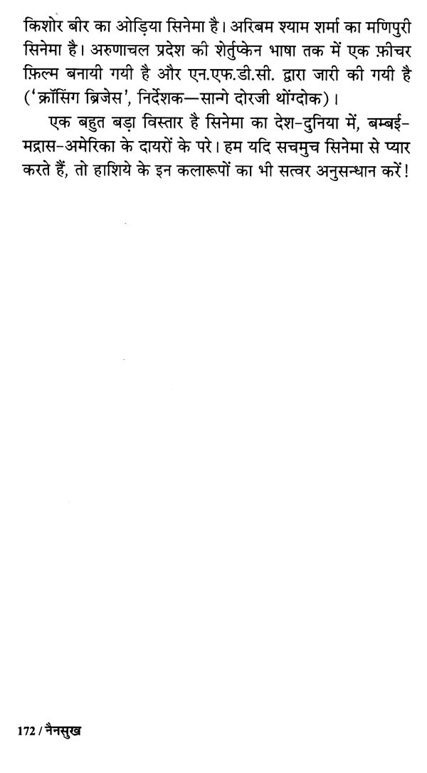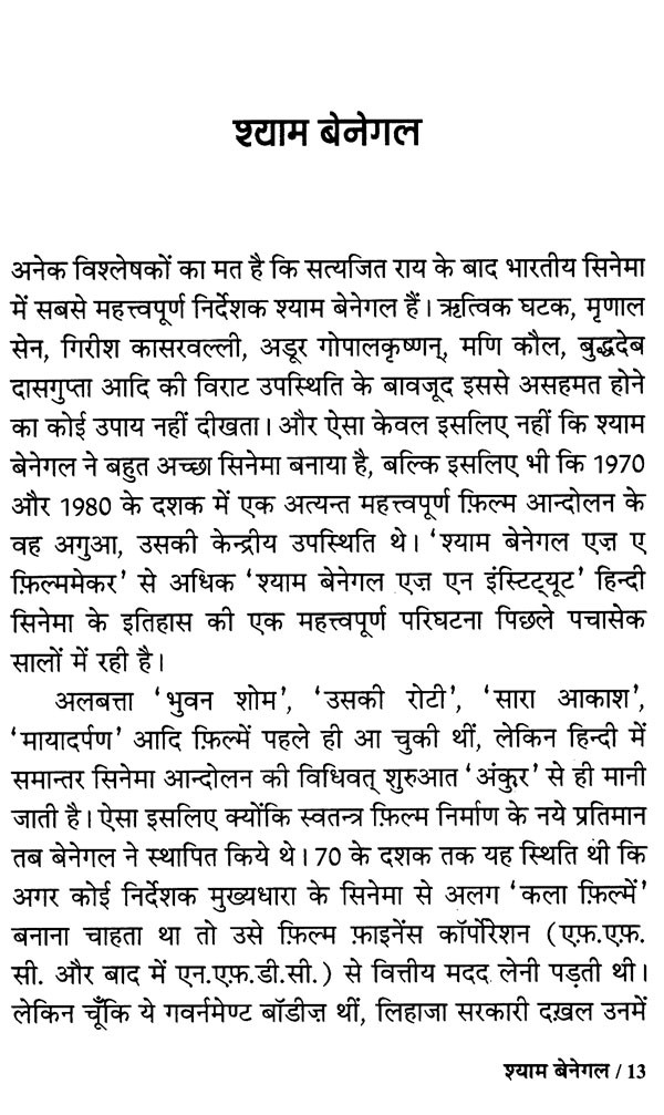 1970-80 के दशक में बनायी गयी समान्तर सिनेमा की पिक्चरें 'कला फ़िल्में' कहलाती थीं। नसीरुद्दीन शाह, स्मिता पाटिल, शबाना आज़मी, ओम पुरी, फ़ारूख शेख, पंकज कपूर, अनन्त नाग, गिरीश कर्नाड आदि के चेहरे नियमित रूप से उनमें नजर आते। उन फ़िल्मों ने दर्शकों की सामाजिक चेतना और कलात्मक रुचियों को जगाया था और फ़िल्म माध्यम से उनकी अपेक्षाओं को उठाया था। यह किताब भारत के उसी समान्तर सिनेमा आन्दोलन के प्रति अनुराग और अतीत-मोह का परिणाम है और उस भूले-बिसरे पैरेलल सिनेमा के प्रति आदरांजलि है। उसकी भावभीनी याद आज भी अनेक फ़िल्म-प्रेमियों के मन में बसी होगी, और यह किताब उसी याद को पुकारती है। किताब की एक विशिष्टता उसमें भारतीय कला-सिनेमा के शलाका-पुरुष मणि कौल की फ़िल्मों पर एकाग्र पूरा खण्ड है। मणि की 12 फ़िल्मों पर लिखी इन टिप्पणियों को उनके रूपवादी-सिनेमा पर एक सुदीर्घ-निबन्ध की तरह भी पढ़ा जा सकता है।