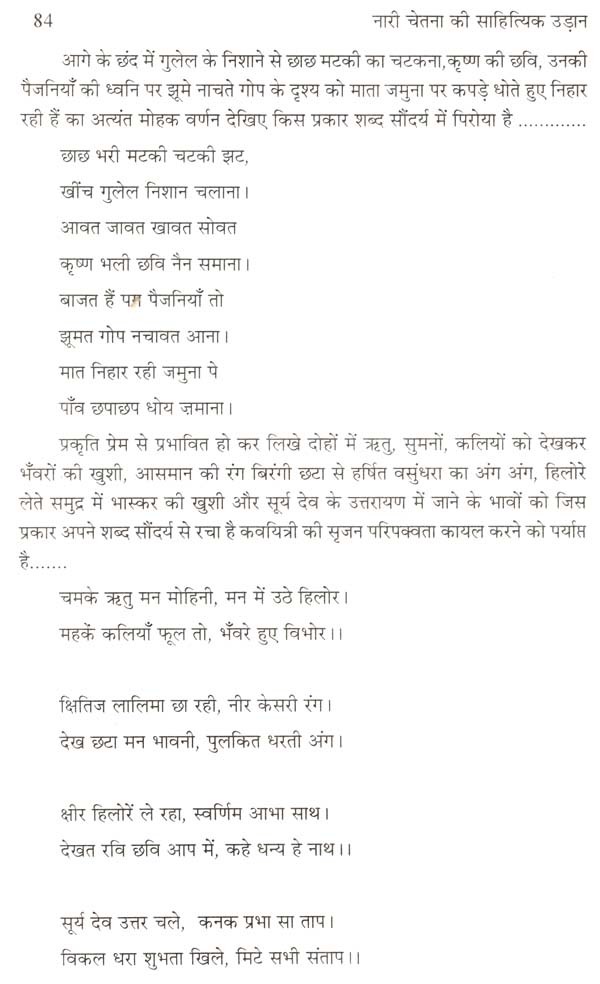 यह सच हैं कि बिना अध्येता हुए आलोचना को नहीं लिखा जा सकता। इस कृति से ऐसा कहीं भी नहीं लगता कि समालोचक लेखक ने लेखिकाओं के बारे में विस्तृत जानकारी ली हो। उसका कारण हैं उन्होंने जो प्रपत्र लेखिकाओं को दिया था उसमें शायद सब कुछ समाहित होने का दृष्टिकोण उनके सामने था। यह कोई शोध कर्म नहीं जो प्रस्तुत कर सामने रखा जाए, इसके बारे में विद्धान लेखक ने मुझे पहले ही अवगत कर दिया था। मैंने लगभग हाड़ौती अंचल की सभी स्थापित लेखिकाओं को गंभीरता से पढ़ा है। मैं दावे के साथ कह सकता हूँ लेखक ने अपने संक्षिप्त आलेखों में अधिक से अधिक जानकारी देने की कोशिश की है।
