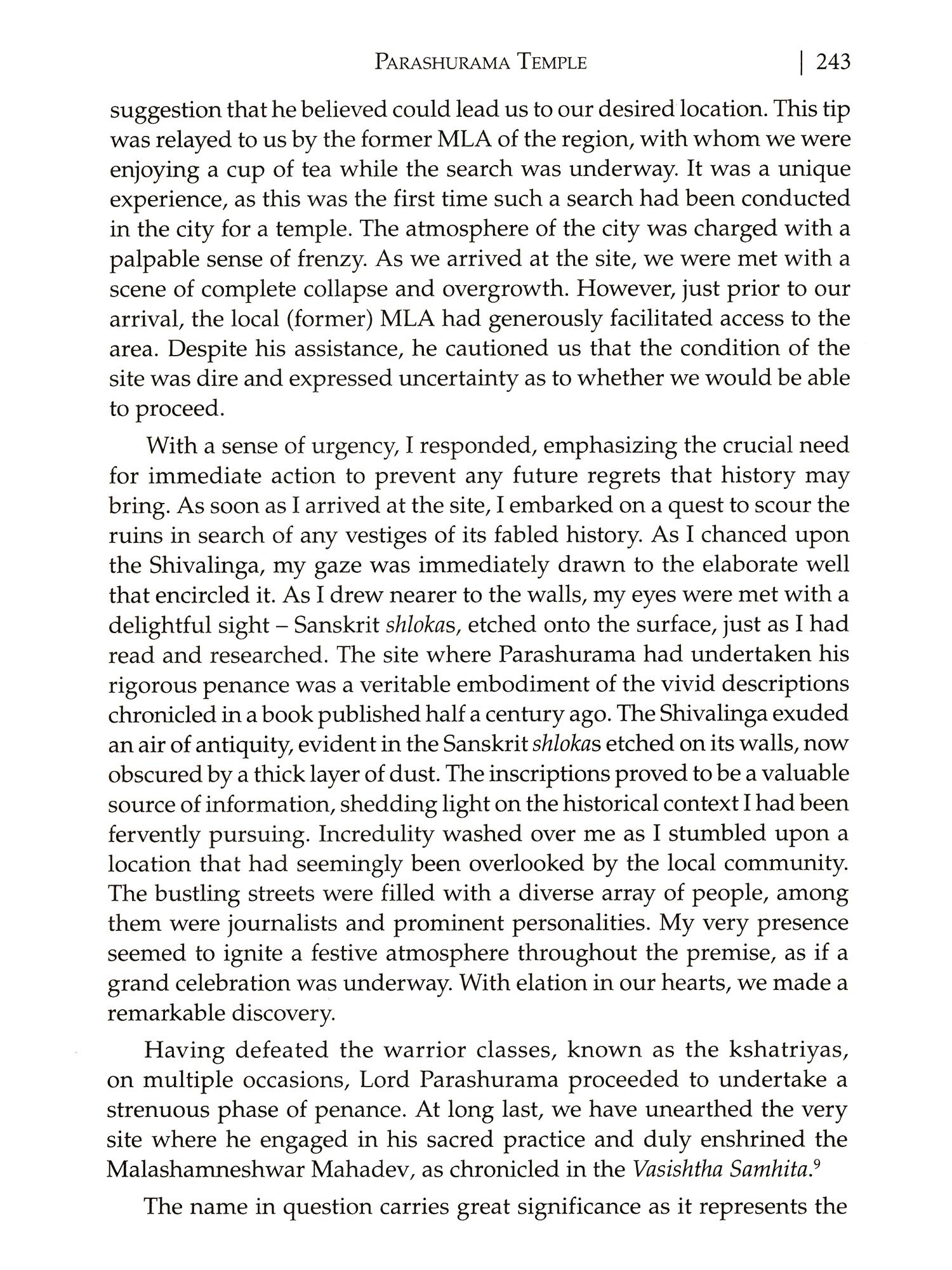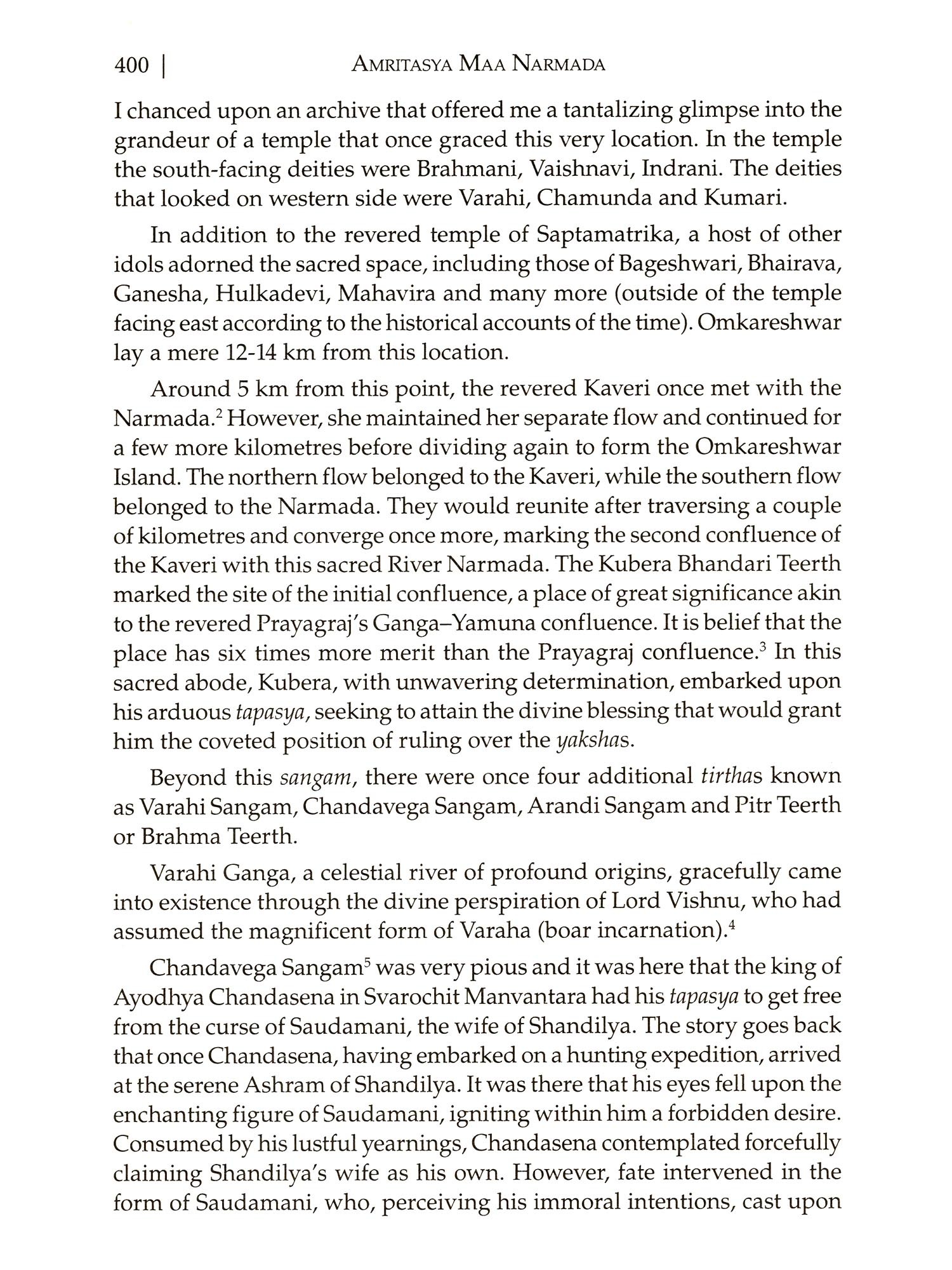 The book recounts the journey of Vivek ji and numerous others during the years 2022-23 along the revered banks of the Narmada river. The book is not just a travelogue of the author's journey along the banks of the river, but also a documentation of the numerous ancient teerthas that are scattered along the holy banks of Narmada, which have been mostly forgotten by everyone. The teerthas are the starting point of the Narmada Parikrama, playing a crucial role in shaping this tradition. Vivek ji's Narmada parikrama was a journey undertaken with the purpose of immersing oneself in the spiritual landscapes of the sacred Narmada river. However, it was the parikrama that ultimately uncovered and drew attention to the Teerthas.