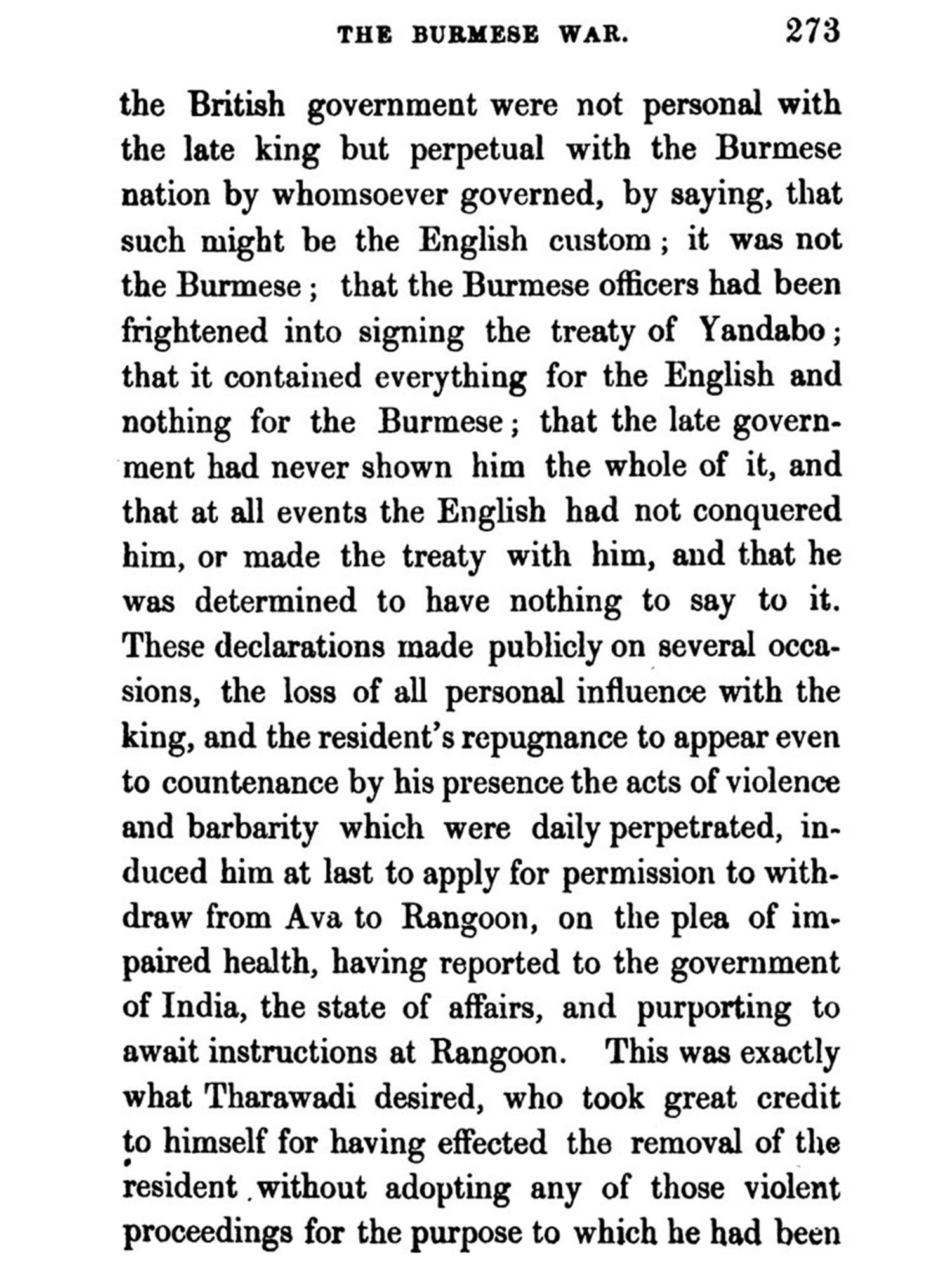 THE war with the Burmas in 1824-26, was at-tended with so many circumstances of a novel and peculiar character, and opened to European access so many new and interesting regions, that it was thought advisable by the Government of Bengal, to place before the public in a collective and available form, a series of official documents, illustrative of the origin, course and termination of hostilities: providing in this manner a trust-worthy guide for any future emergency of a similar nature, and disseminating authentic in-formation respecting the valuable countries be-tween India and China, of which at the time little or nothing was known.