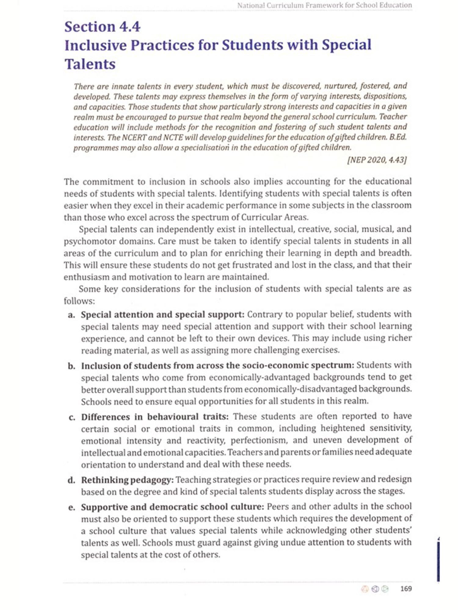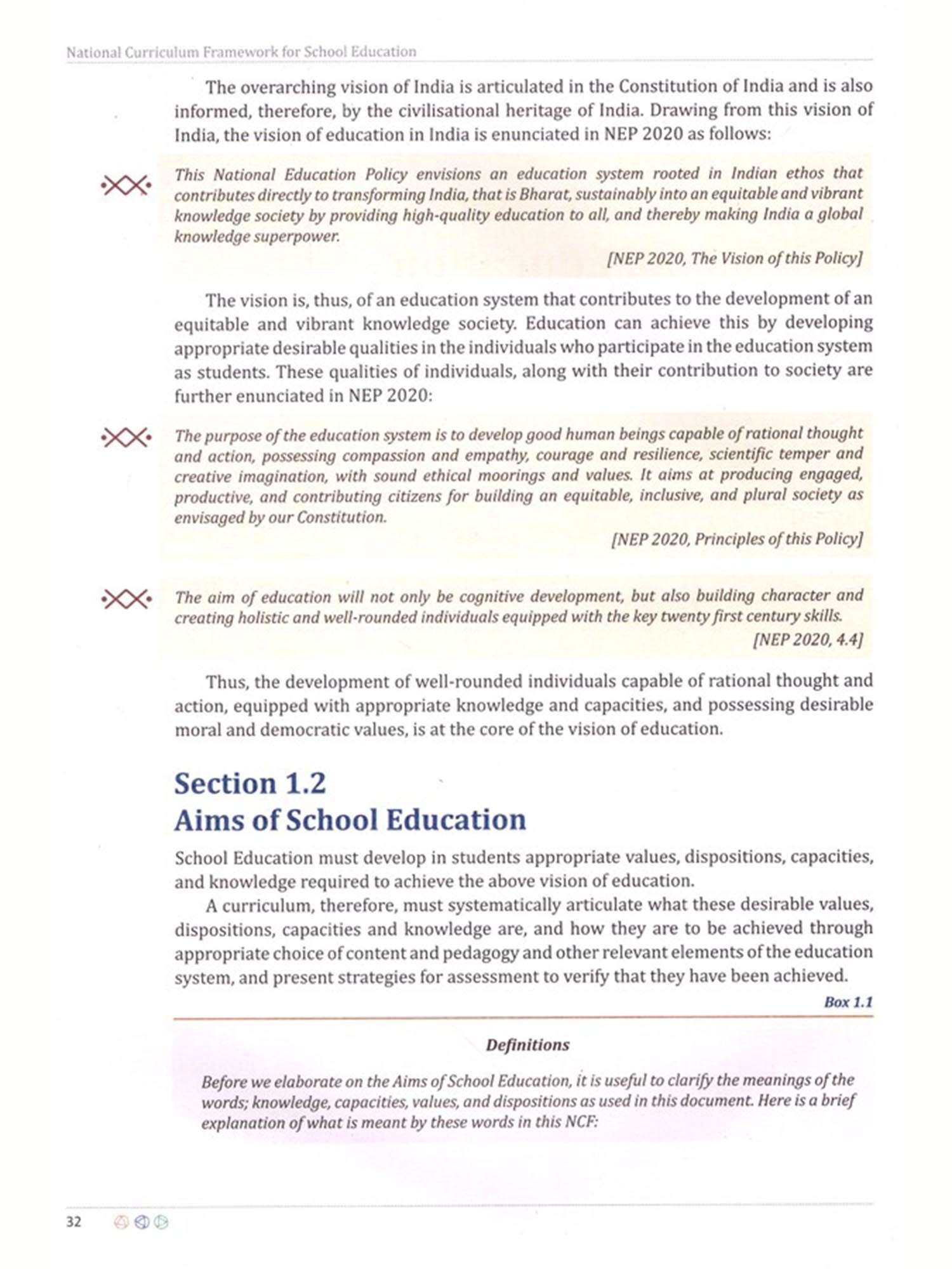 This NCF aims to provide each such interested reader a reasonable understanding of what education should be like in the vision of this NCF, and why, and what role they could play.