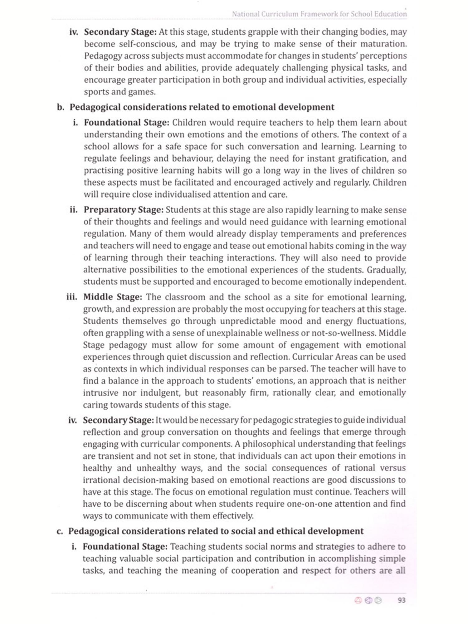This approach of detailing should also make this NCF more useful and readable not just to teachers, but to all the practitioners of education including school leaders and academic and administrative functionaries, such as, cluster and block resource persons, BEOs, teacher educators, examination boards, and curriculum or syllabus or textbook development teams, as well as to those who have the greatest stake in education, namely, parents, community members, and of course, the students themselves.