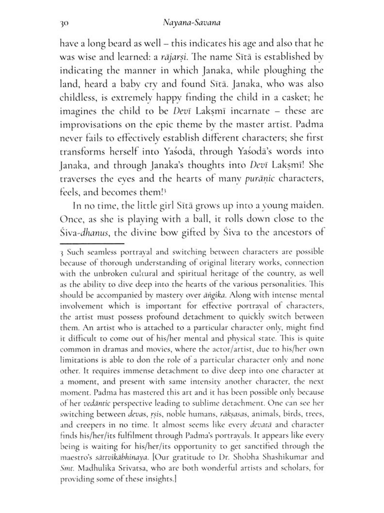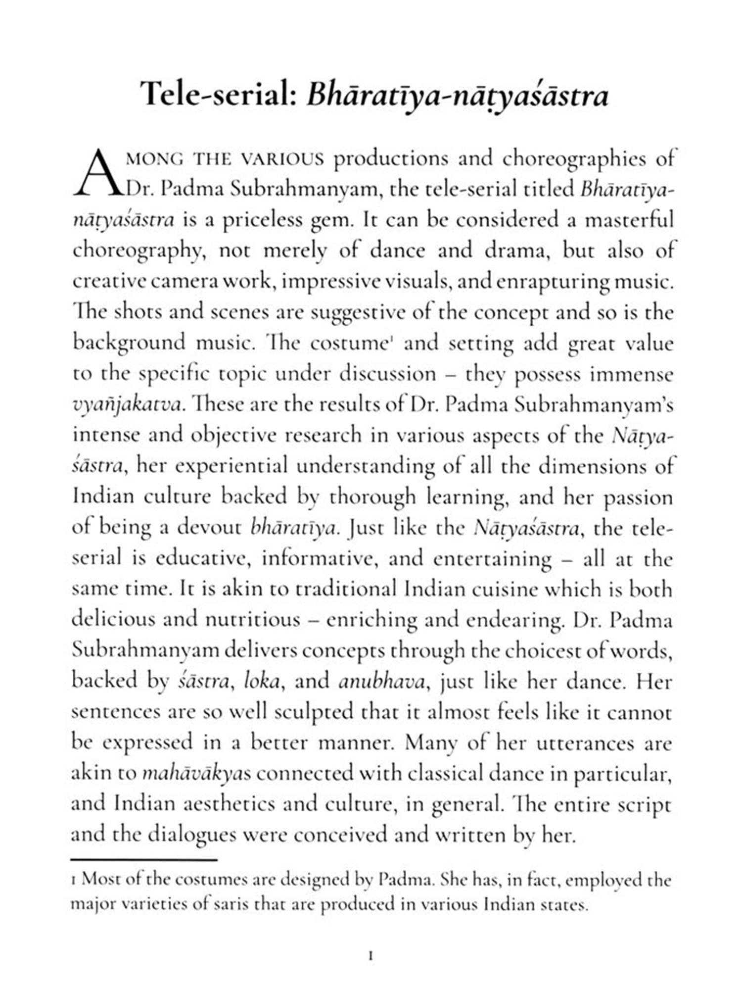 Satavadhaní Dr. R. Ganesh and Arjun Bharadwaj, both multi-faceted scholars with a strong foundation in the Natya-śastra and Indian aesthetics, capture the multiple dimensions of her full-fledged productions and short-length presentations. Their creative appreciation of Padma's works not only brings out the subtleties in her dance but also highlights the aspects literature, music, costume, sculptures, and philosophy. The authors share anecdotes from Padma's life that give a glimpse of her brilliant mind.