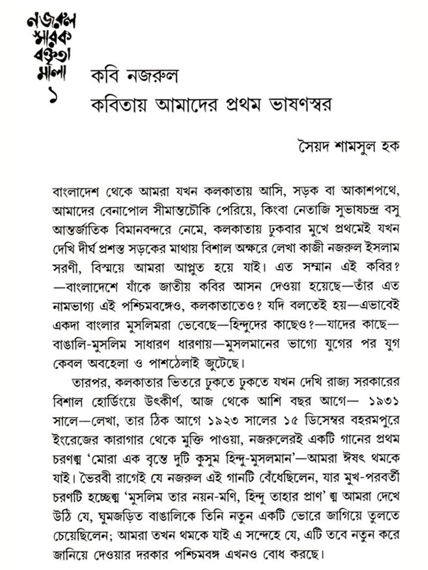 Janaganer Kabi Kazi Nazrul Islam in Bengali (An Old and Rare Book)