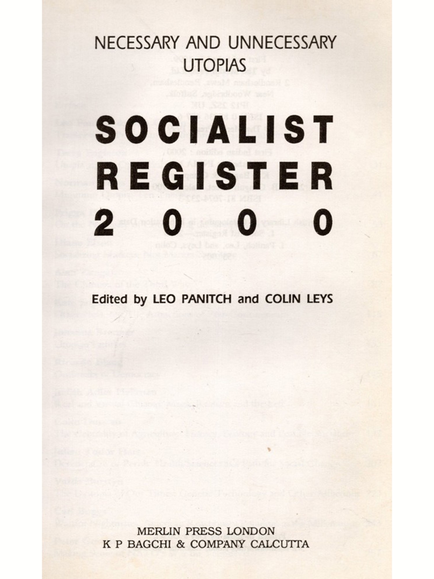 It is sad that this volume, the thirty-sixth since the Register was launched in 1964, is the first one not to have been seen through every stage of its production by Martin Eve, the founder and publisher of Merlin Press, since its theme was very close to his heart. Martin died in October 1998 at the age of 74, after a twelve-year fight against cancer which gradually robbed him of his physical mobility, but never of his keen intellect, his wry sense of humour or his phenomenal personal courage.