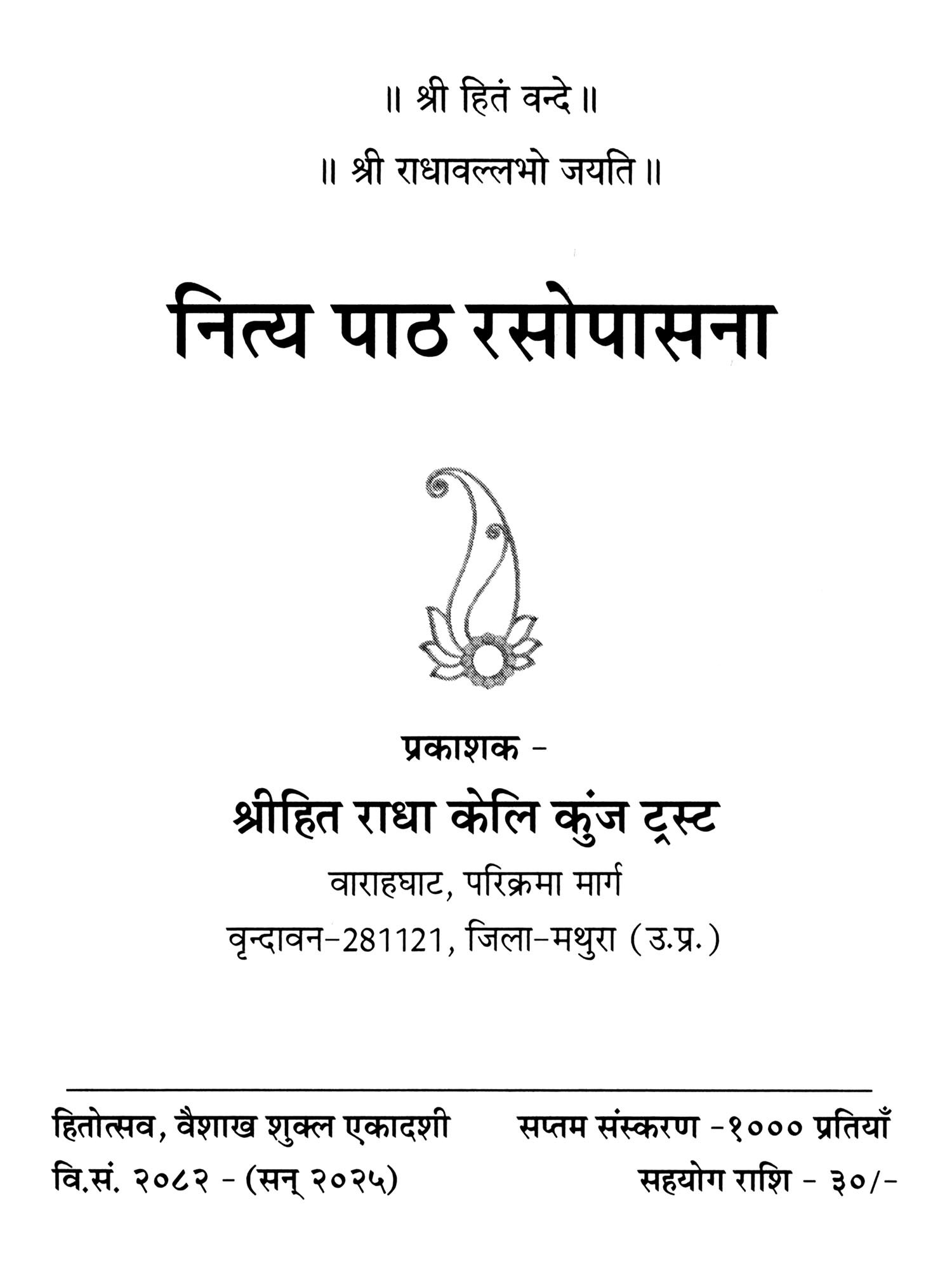 नित्य पाठ रसोपासना- Nitya Path Rasopasana