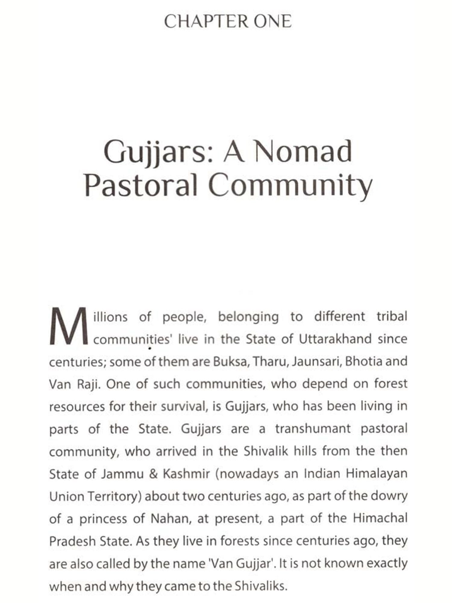 Gujjars (Van Gujjars) are a transhumant pastoral community who sustained in the parts of the Central Himalaya and northwestern Shivalik landscape since about last two centuries. Rajaji National Park, a north Indian protected habitat, which is a natural home to several endangered wild species, sustained the Gujjars for over the decades. As part of their traditional culture, the Gujjars migrate to the high pasturelands, locally called 'Bugyals' with the herds of buffaloes at the beginning of summer, and at the onset of winter, they start returning to the foothills of the Shivaliks. In order to implement the provisions as stated in the Wildlife (Protection) Act 1972 and to provide the Gujjars with improved livelihood opportunities, a rehabilitation programme for Gujjars was initiated in 1980s. It took almost about 40 years to resettle them to an urban environment from the forest life.