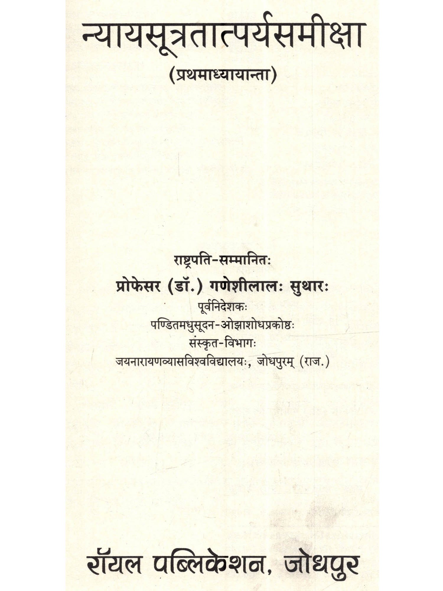 न्यायसूत्रतात्पर्यसमीक्षा (प्रथमाध्यायान्ता): Nyayasutratatparyasamiksha (Prathamadhyayanta)