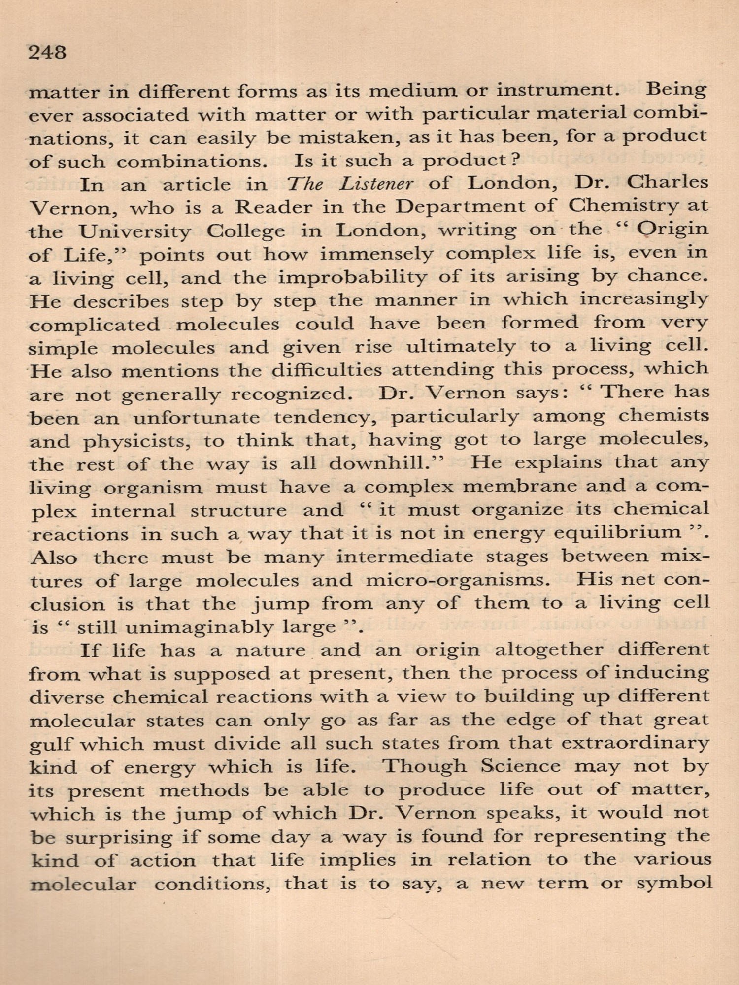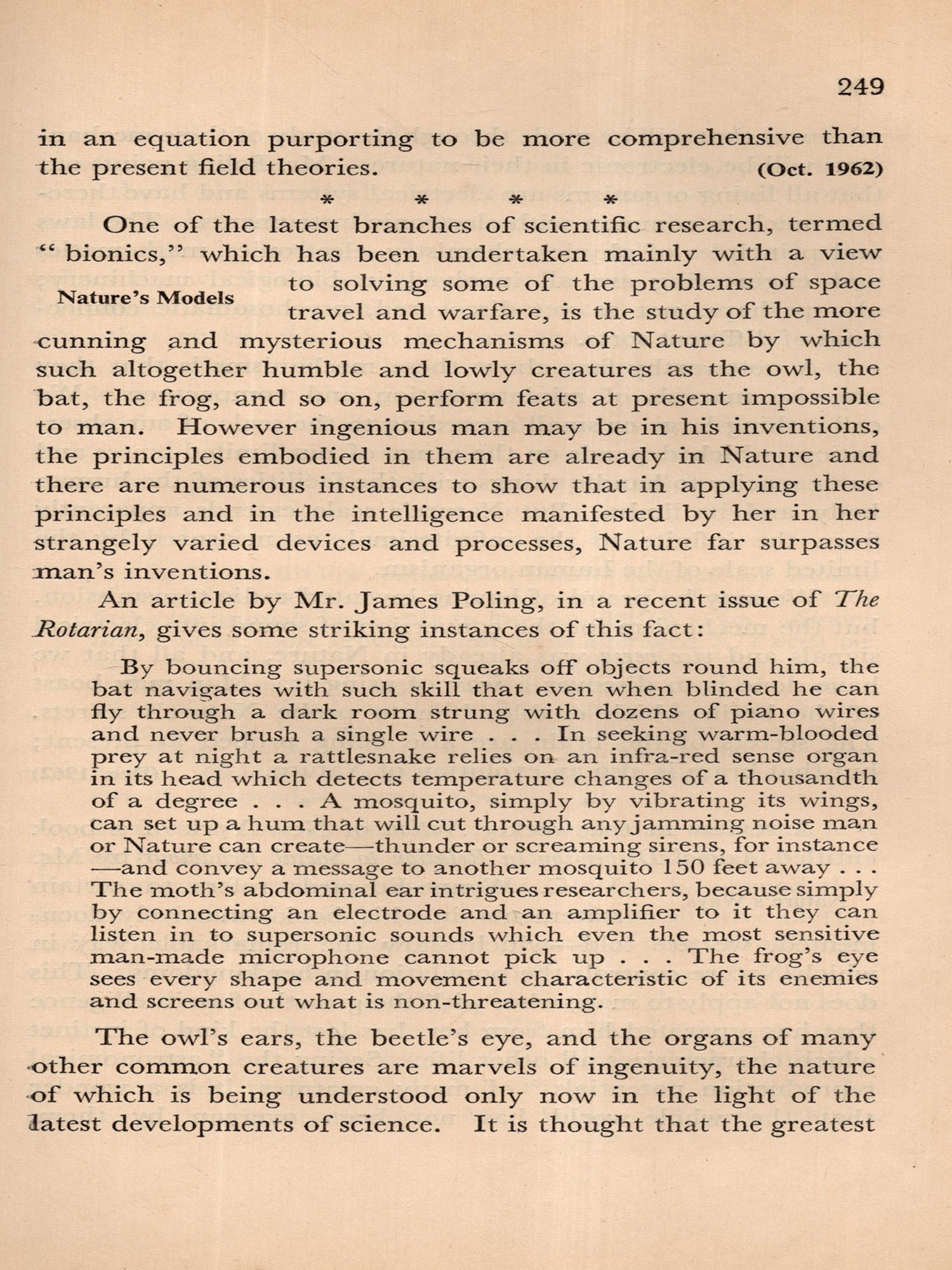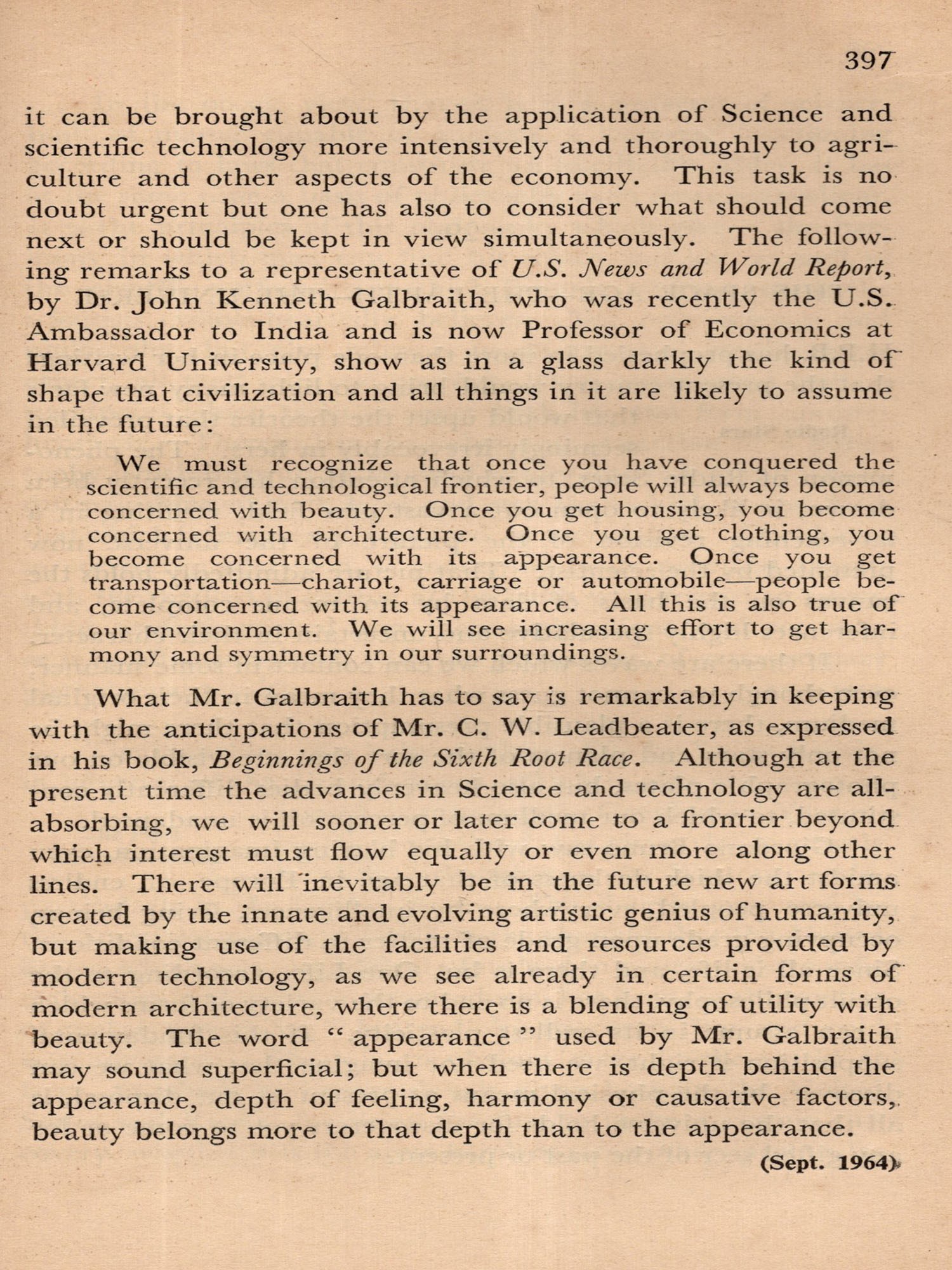 With the present volume this task has been assumed and splendidly performed by Miss Elithe Nisewanger, who, throughout the President's term of office, has been Mr. Sri Ram's private secretary. A glance at the contents page of the book reveals that the material has been carefully disposed, with related subjects grouped in the thirty-seven different sections. Within each of the sections the Notes appear sequentially, the earlier preceding the later writings. Each has a foot-note giving the date of its appearance in THE THEO-SOPHIST. There is also an index of titles listing them in alphabetical order.