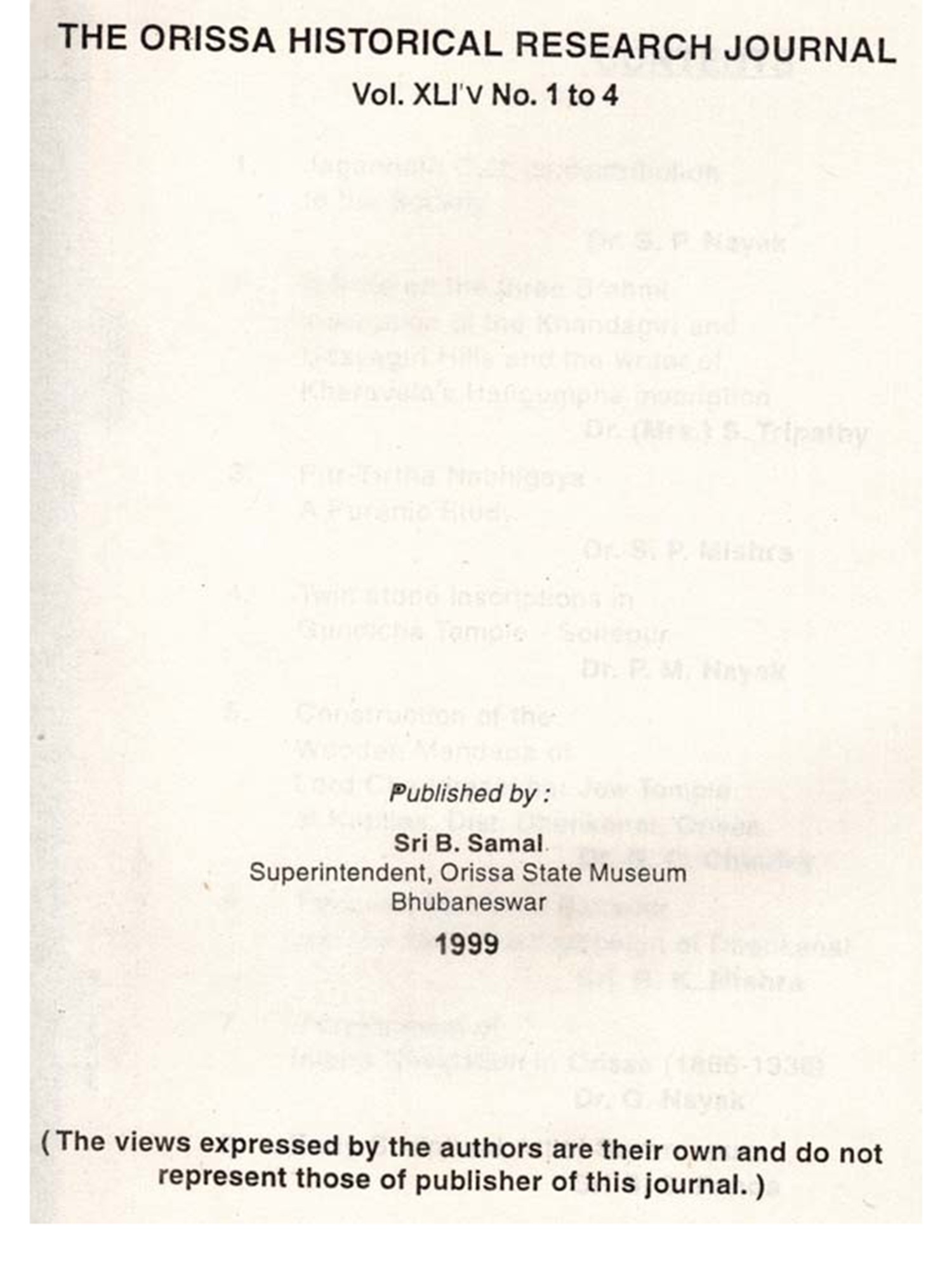The Orissa Historical Research Journal Vol. XLI No.1 to 4 Including Articles on Bidala Narasimha and Chronology of the Bhauma Karas (An Old and Rare Book)