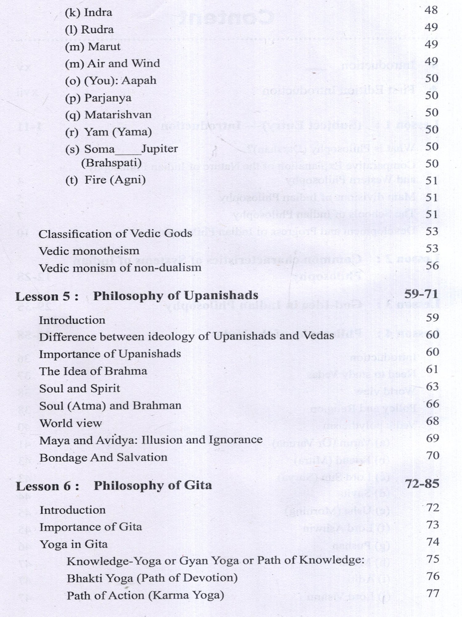 Explanation of the underlying central concepts- Brahman, Atman, identity of Brahman and Atman, Maya and Moksha have been comprehensively encompassed and covered. Topics on fresh material in Gita's Jnana-Yoga, Bhakti-Yoga and Karma-Yoga have also been imbibed. Anekantavad has been added in Jain Philosophy. Types of Learnings and Knowledge in the philosophy of justice, and analysis of Prama and Aprama and of 'scope' have been comprehensively explained.