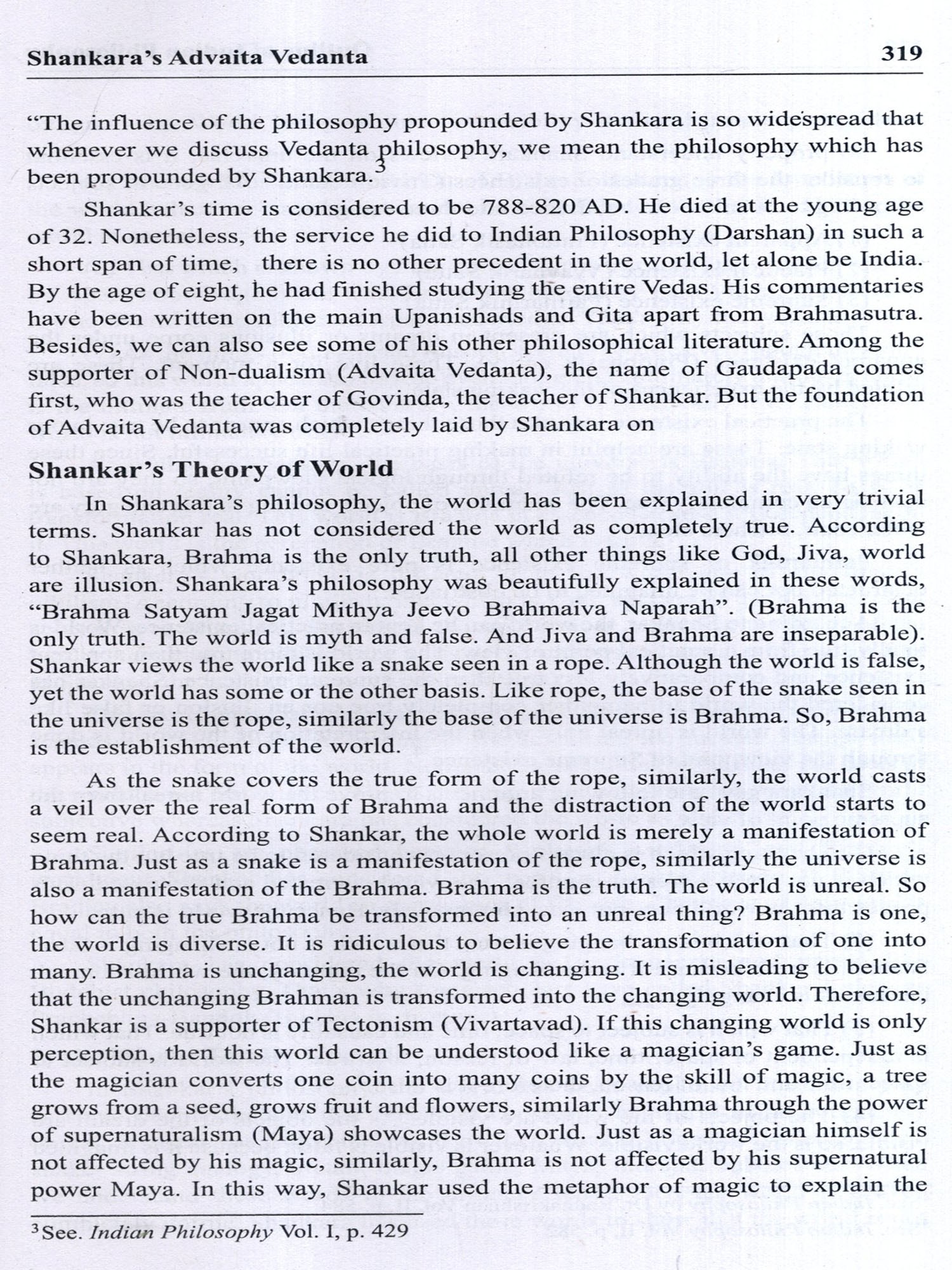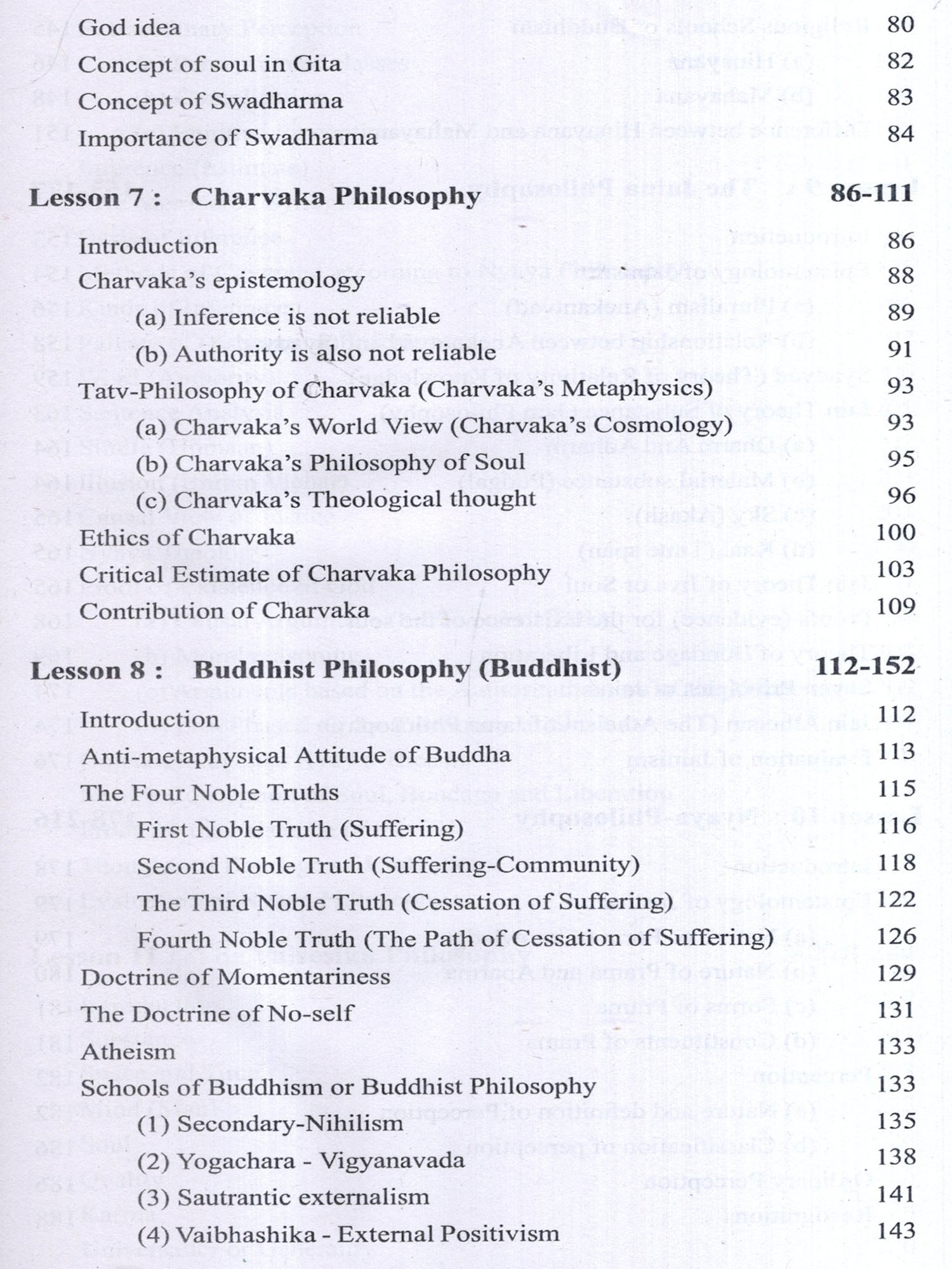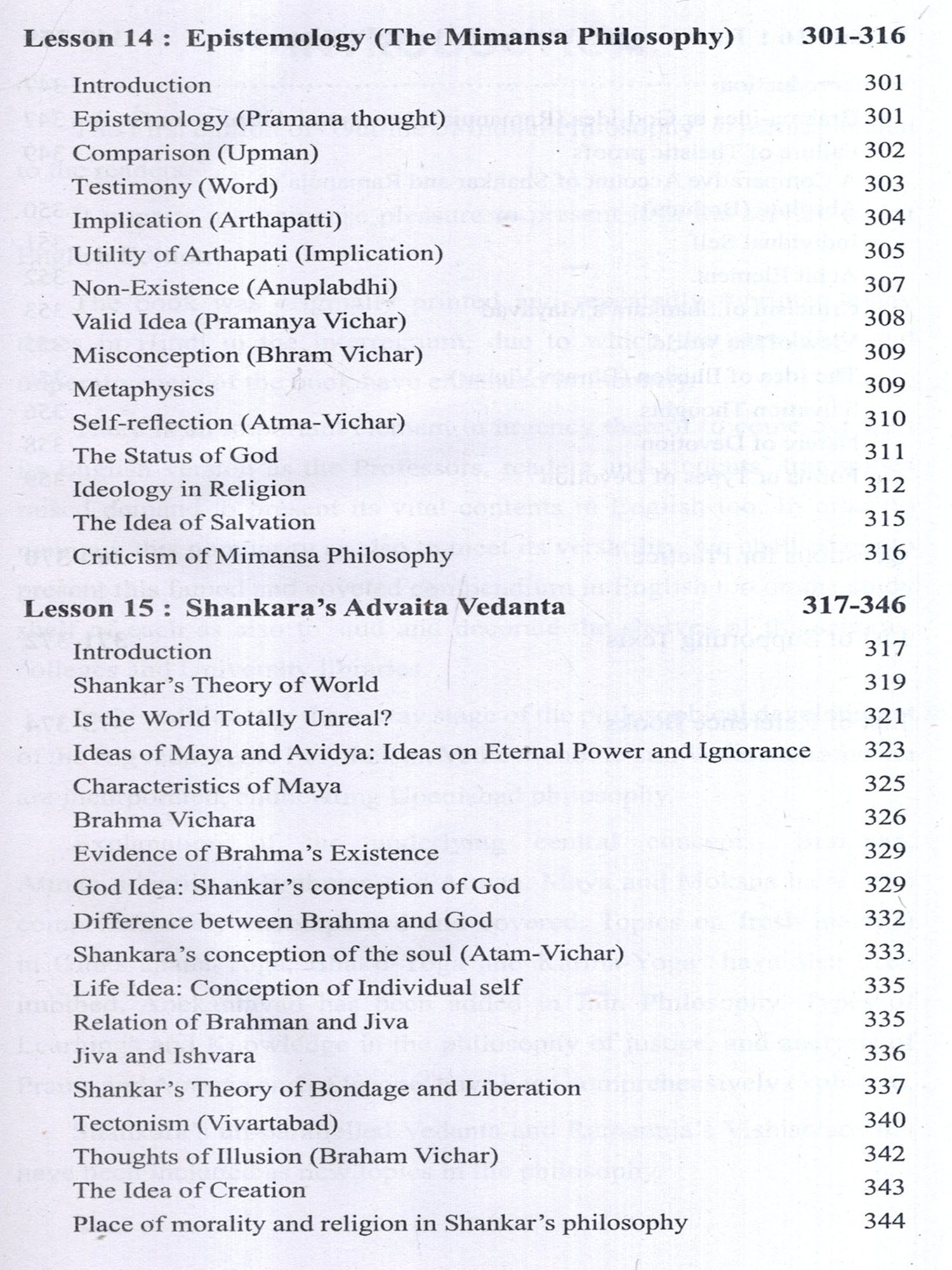 Shankara's unparallelled Vedanta and Ramanuja's Vishishtadvaita have been included as new topics in the philosophy.