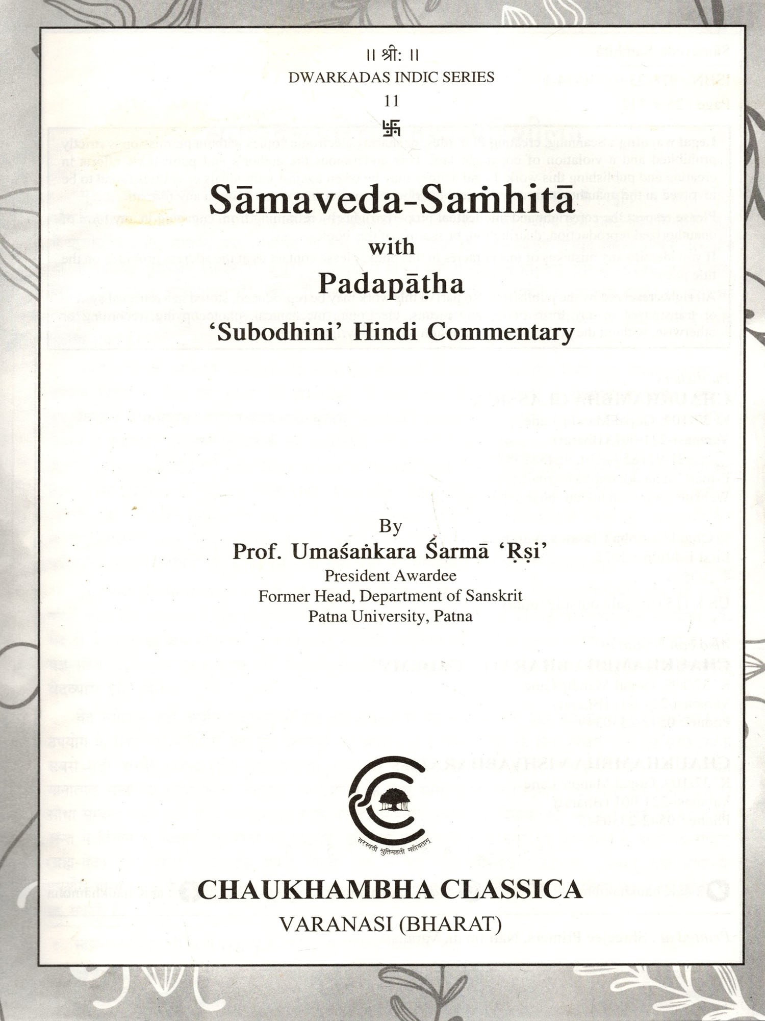 पदपाठ्युता सामवेद-संहिता: Padapathyuta Samaveda-Samhita ('Subodhini'- with Hindi Explanation)
