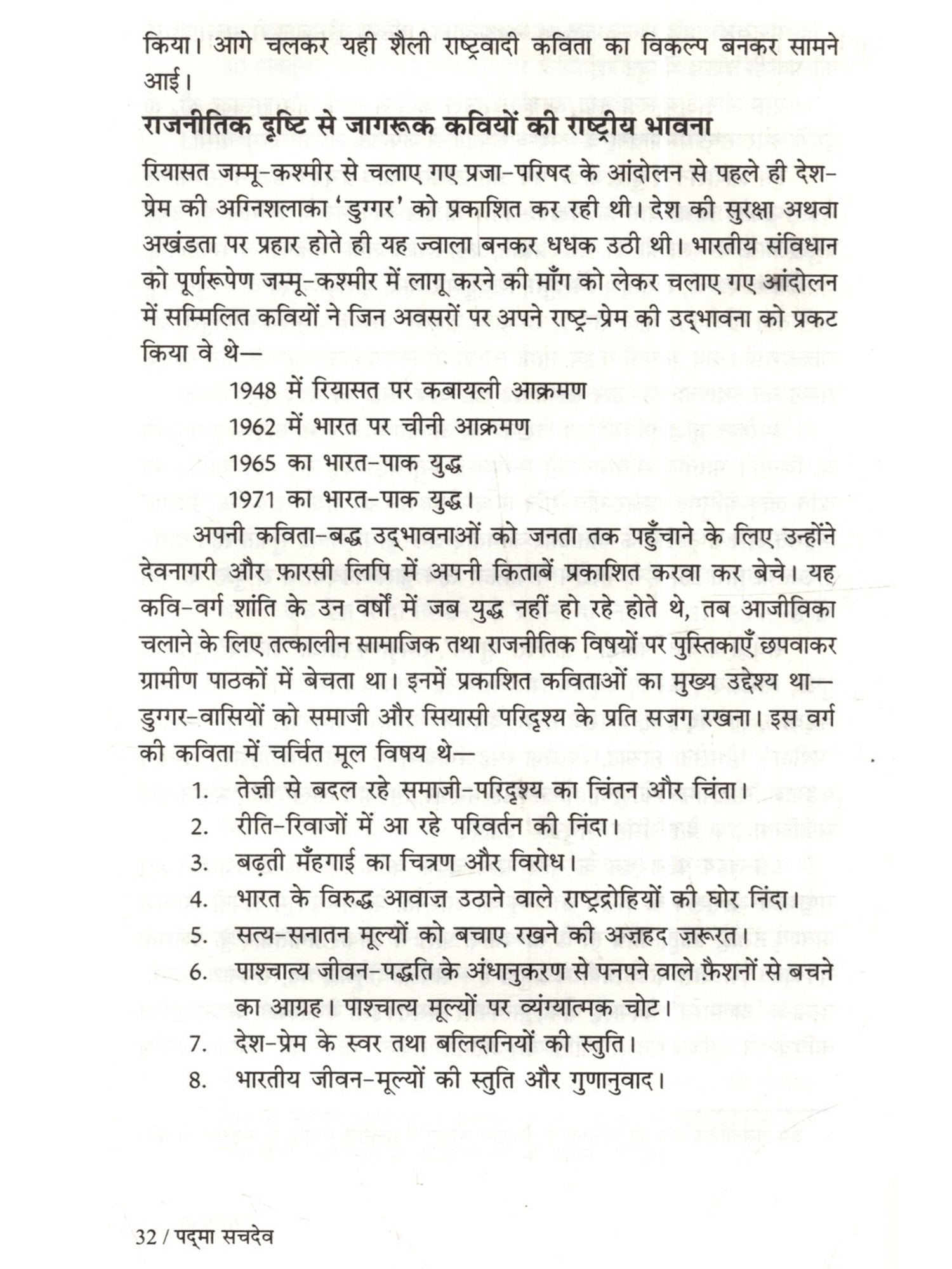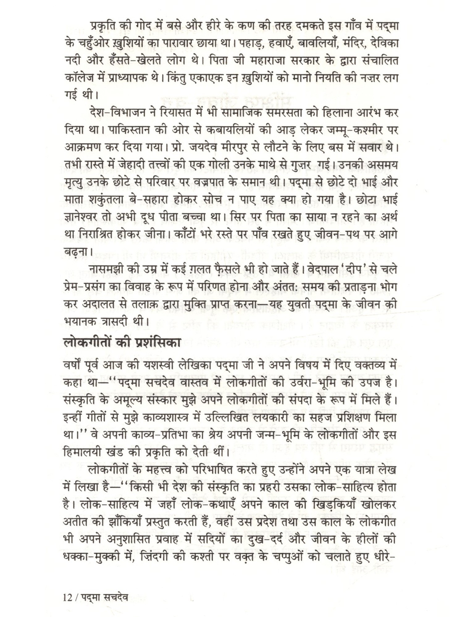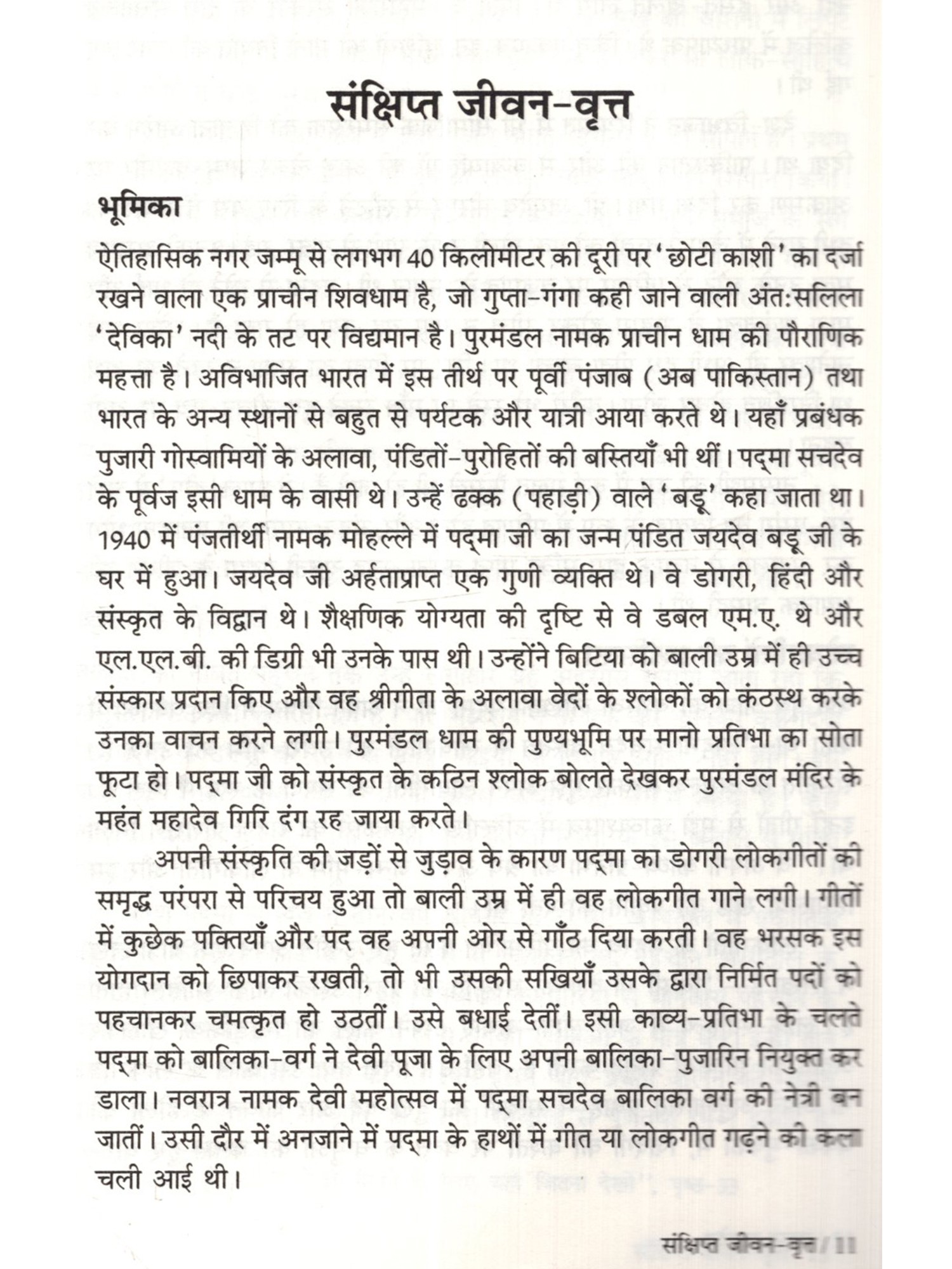 क्षेत्र 'डुग्गर' सदियों से भारत देश का निगहबान रहा है। पद्मा सचदेव को इस बात का