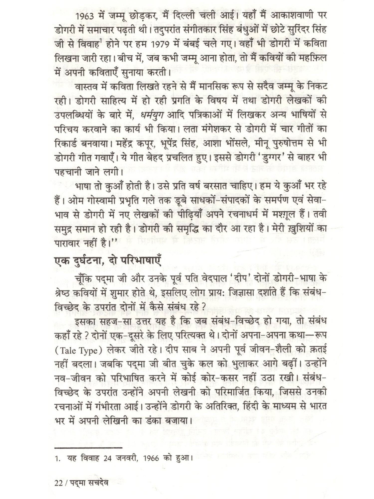 बधाई की पात्र है। इसे मैं परम सौभाग्य का विषय मानता हूँ कि पद्मा सचदेव पर विनिबंध