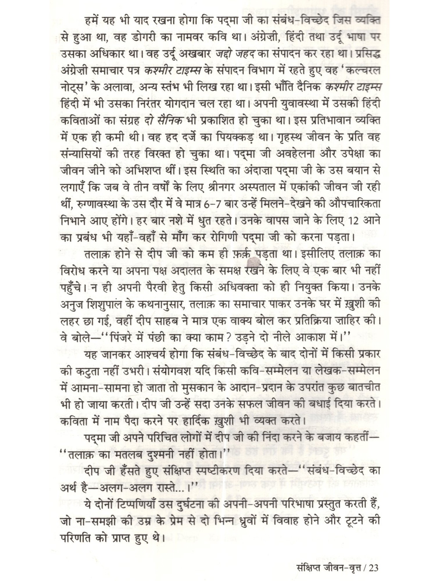 अभिमान है। इस विनिबंध में पद्मा जी के जीवन की महत्त्वपूर्ण कड़ियों तथा घटनाओं को
