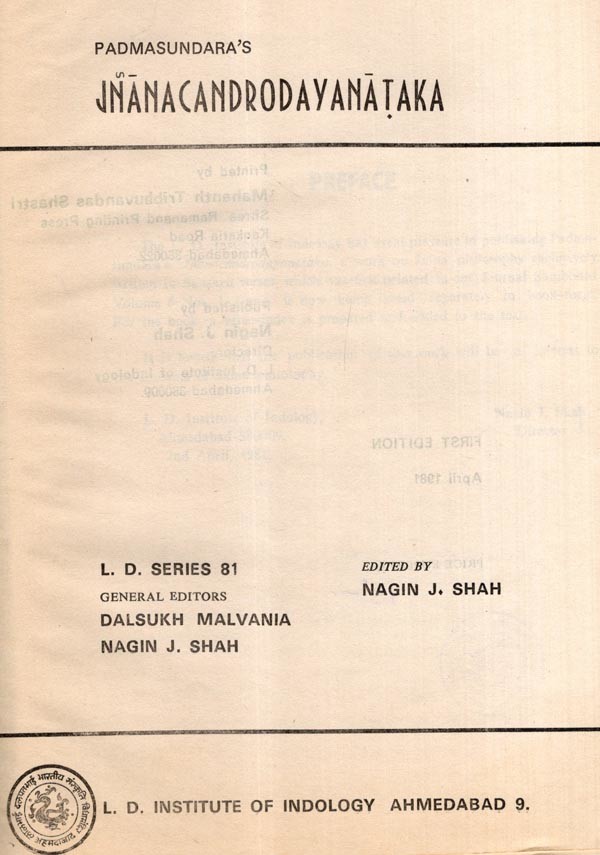 Padmasundara's Jnanacandrodayanataka (An Old and Rare Book)