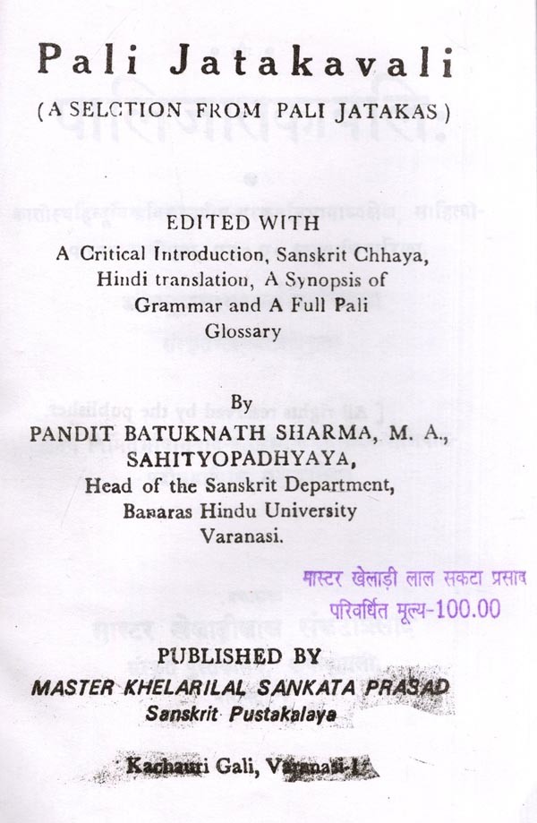 पालिजातकावलिः- Pali Jatakavali: A Selction from Pali Jatakas (Photostat)