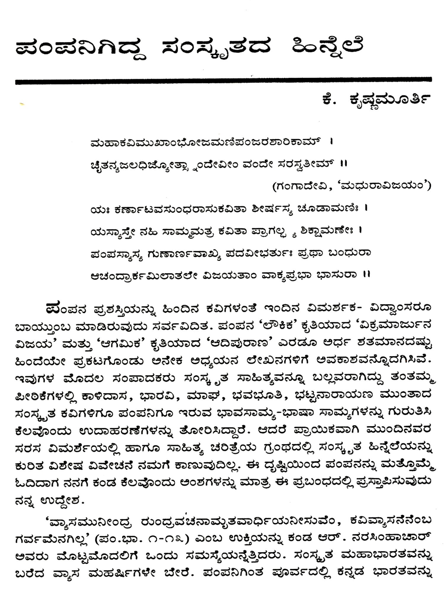 ಸಾಹಿತ್ಯ ಸಂಕಥನ: Sahithy Sankathana- A Collection of Articles in Kannada (An Old and Rare Book)