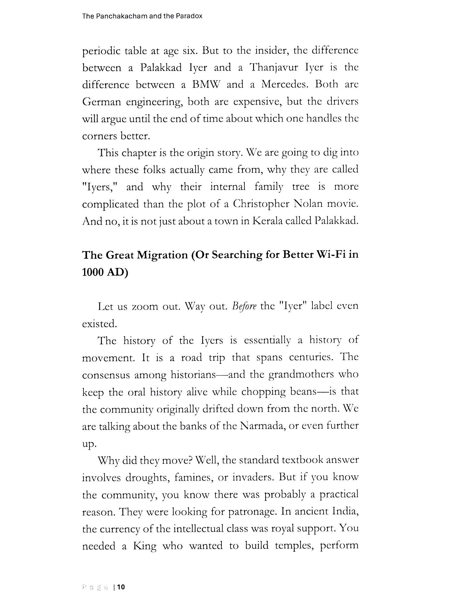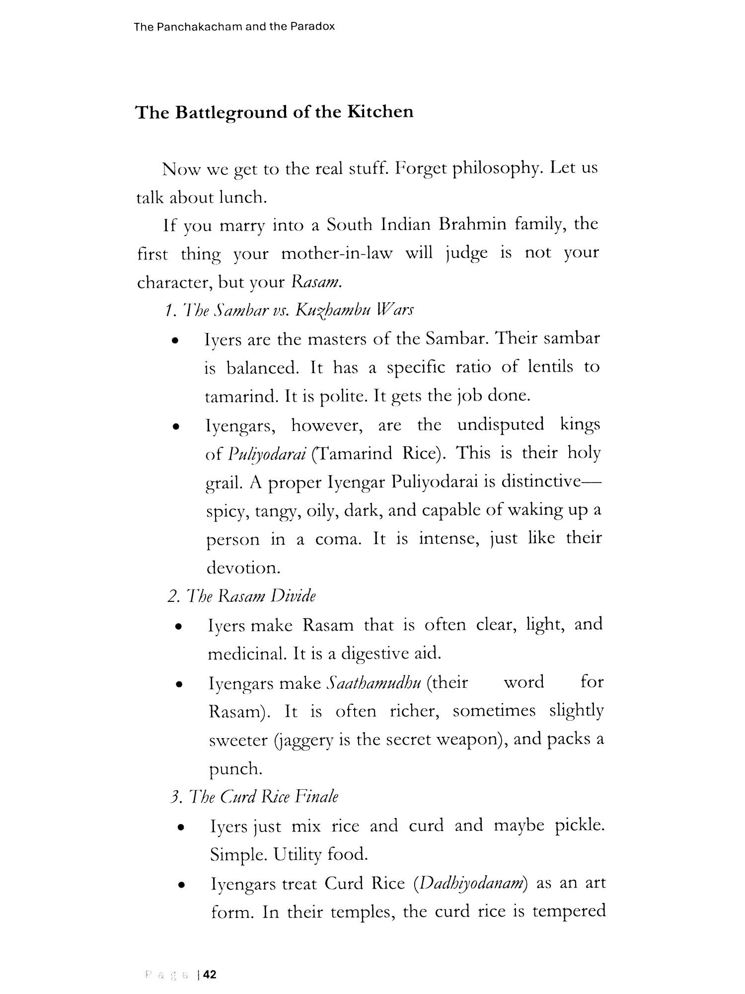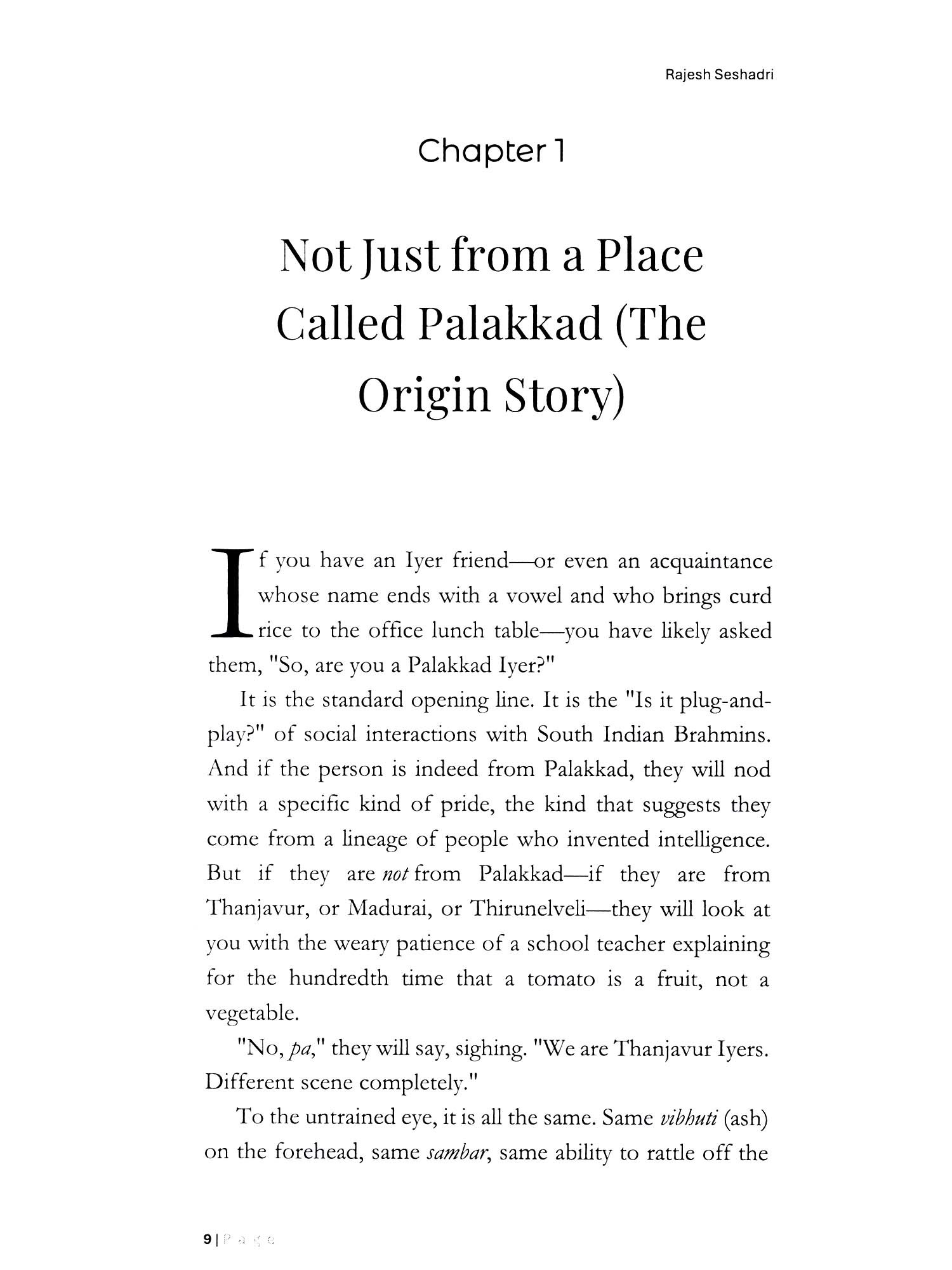 From the Banks of the Cauvery to the Boardrooms of the Bay Area... Who are these people? They are the folks who wake up at 4 AM to chant Sanskrit verses essentially claiming they are the Supreme Lord of the Universe, only to spend the rest of the day worrying about the price of tomatoes. They are the community that gave the world Nobel laureates, mathematical geniuses, and the CEOs of Google and Pepsi, all while sustaining themselves on a diet of logic, curd rice, and zero onions. The Panchakacham and the Paradox is an unfiltered, witty, and deeply researched dive into the world of the "lyer." It is a journey that moves from the high-altitude philosophy of Adi Shankaracharya's Advaita (Non-Dualism) to the ground-level warfare of the lyer-lyengar Sambar rivalry. Rajesh Seshadri peels back the layers of a community that is a walking contradiction: ancient yet hyper-modern, ritualistic yet scientifically rigorous, frugal yet intellectually extravagant.