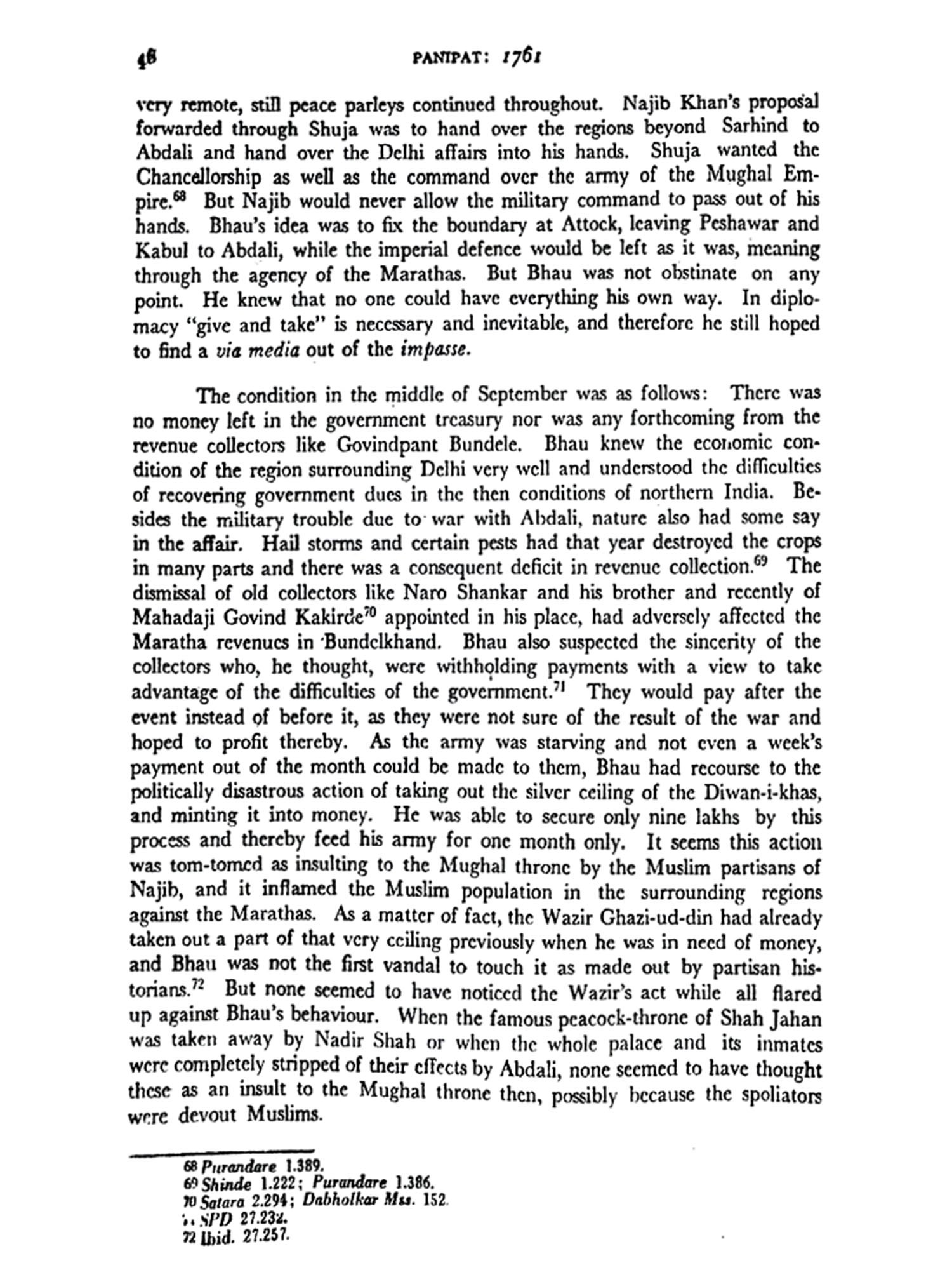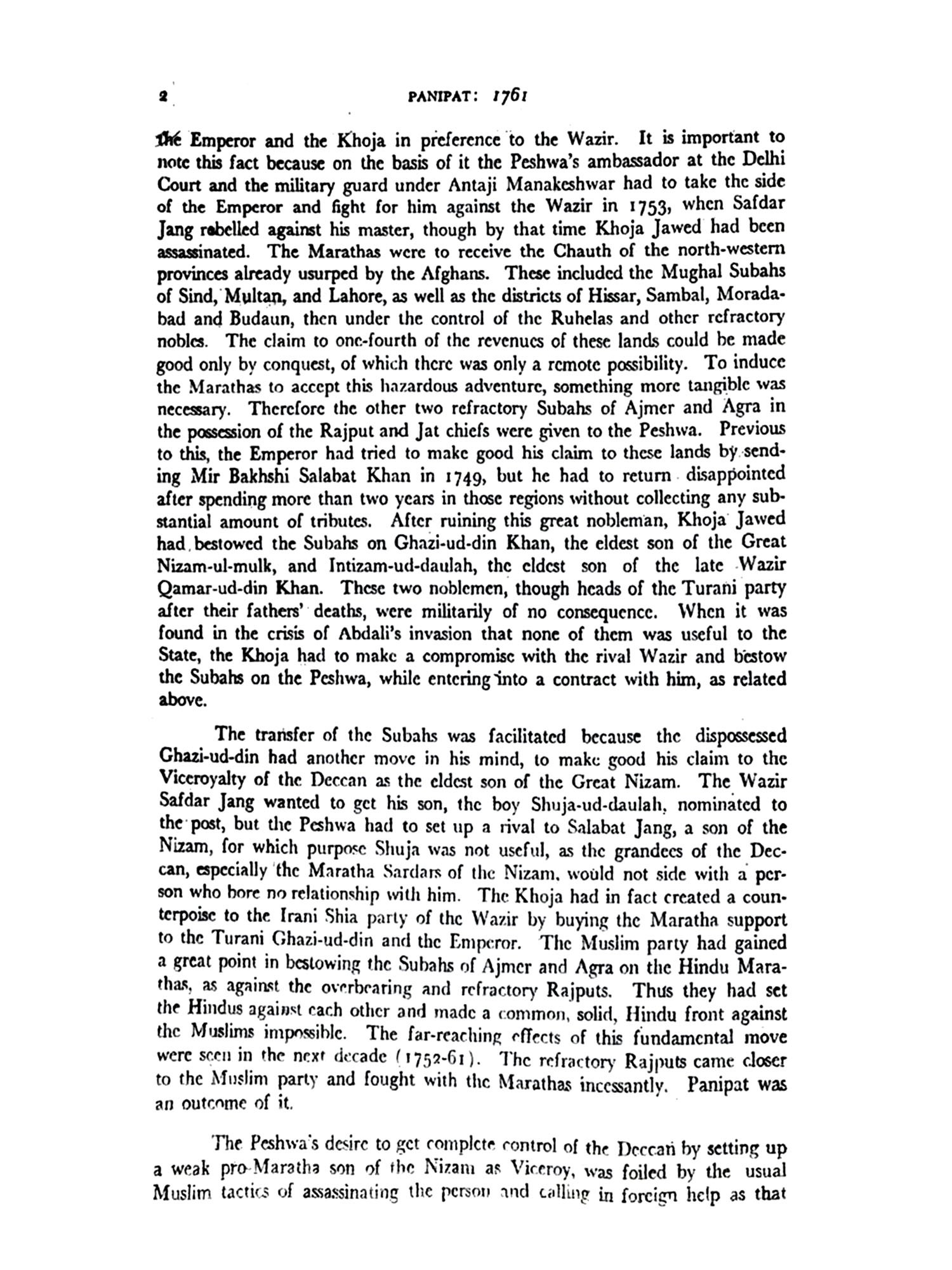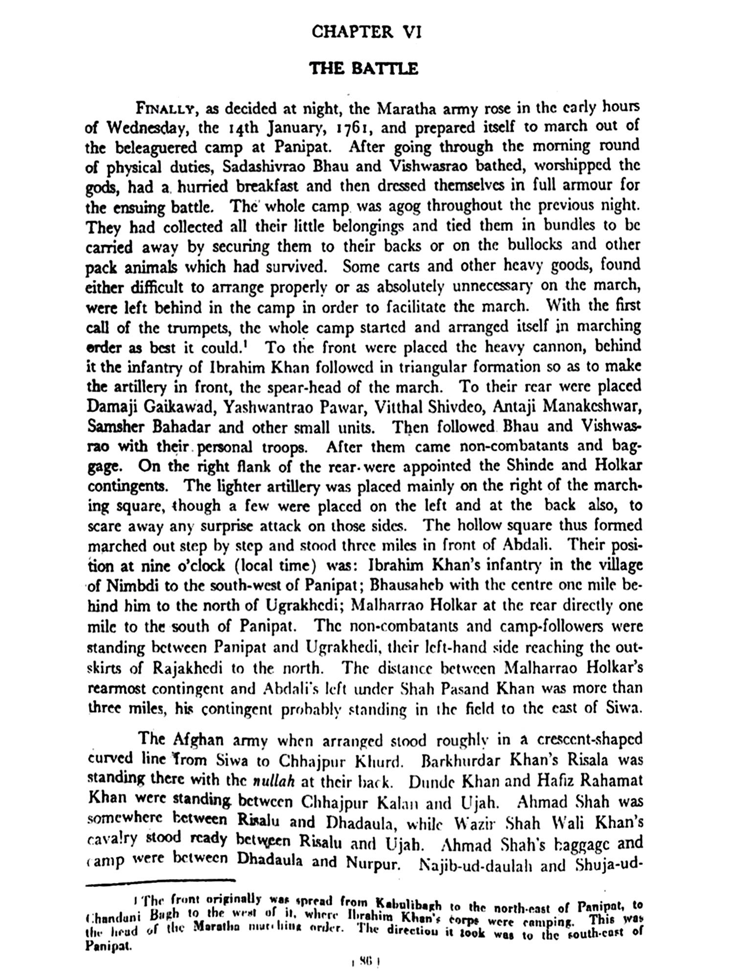 Most of the ordinary readers will miss the graphic part of history they have up till now read in the accounts of Panipat. I thought of omitting them from my narrative because I have no belief in their truth or even probability. The idea of copying such details from the chronicles simply because no other light can be shed on these events or episodes, I think as faulty. By their repetition, a disservice is done to the cause of history.
