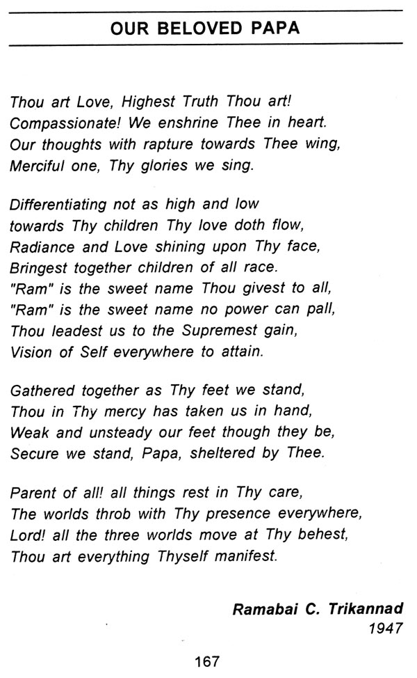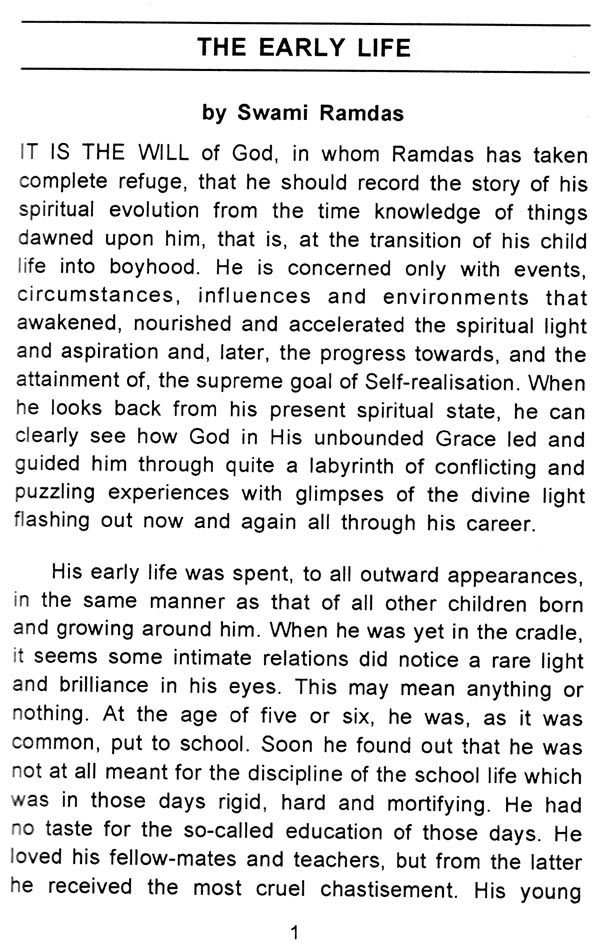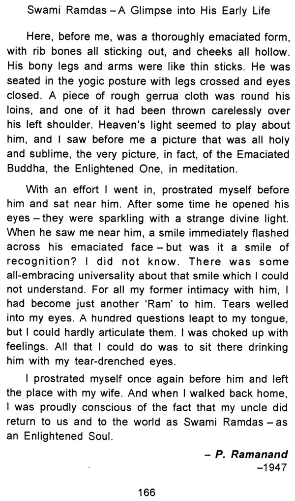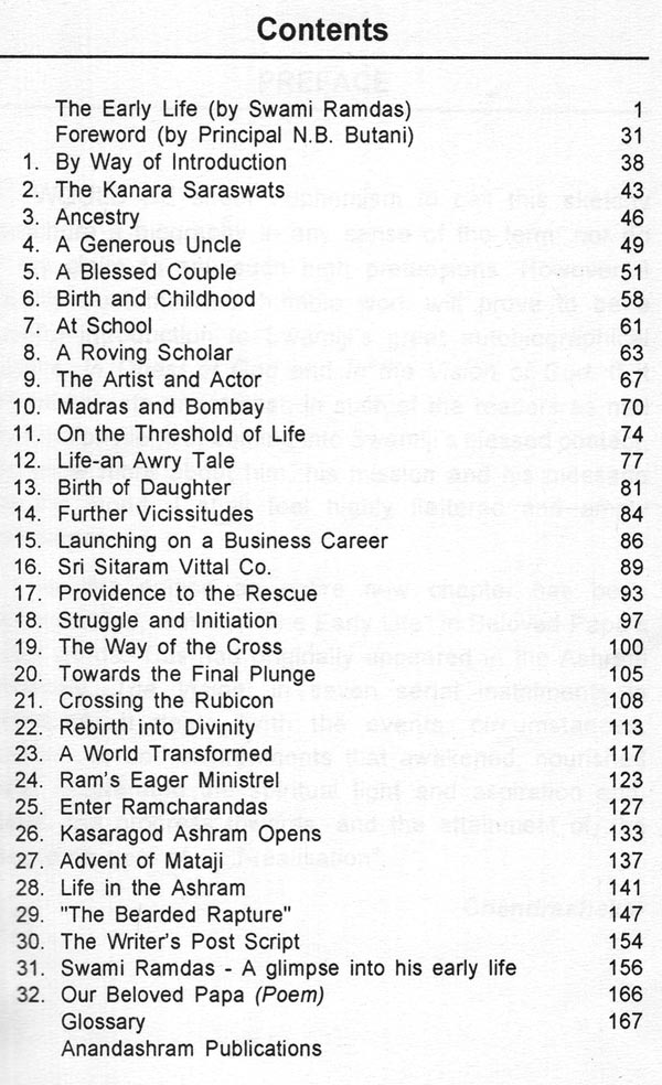 Sri Chandrashekar B. Trikannad, the author of this biography covering the early life of Beloved Papa Swami Ramdas, had known the Master intimately being his sister's son and later having wed Beloved Papa's only daughter Ramabai. This association became closer still when Beloved Papa set up the Ashram in Kasaragod in 1928 and Chandrashekar and Ramabai (who also lived in the same town) became instrumental in collecting Beloved Papa's articles and sayings for publication in various magazines. Chandrashekar's home in Kasaragod, Sriram Bhuvan, became the scene of Pujya Mataji's intense Sadhana and it was here that she shared with others all that she had heard from Beloved Papa. It was also from here that Beloved Papa and Mataji moved on to Kanhangad in January 1931 and to the eventual setting up of Anandashram on 15th May 1931. Sri Chandrashekar's close association with Beloved Papa, Mataji and Anandashram continued even after he settled down in Bombay, with Beloved Papa making him instrumental in getting various Ashram publications printed in Bombay. Sri Chandrashekar passed away in 1974 at the age of 72, Ramabai having predeceased him by 22 years.