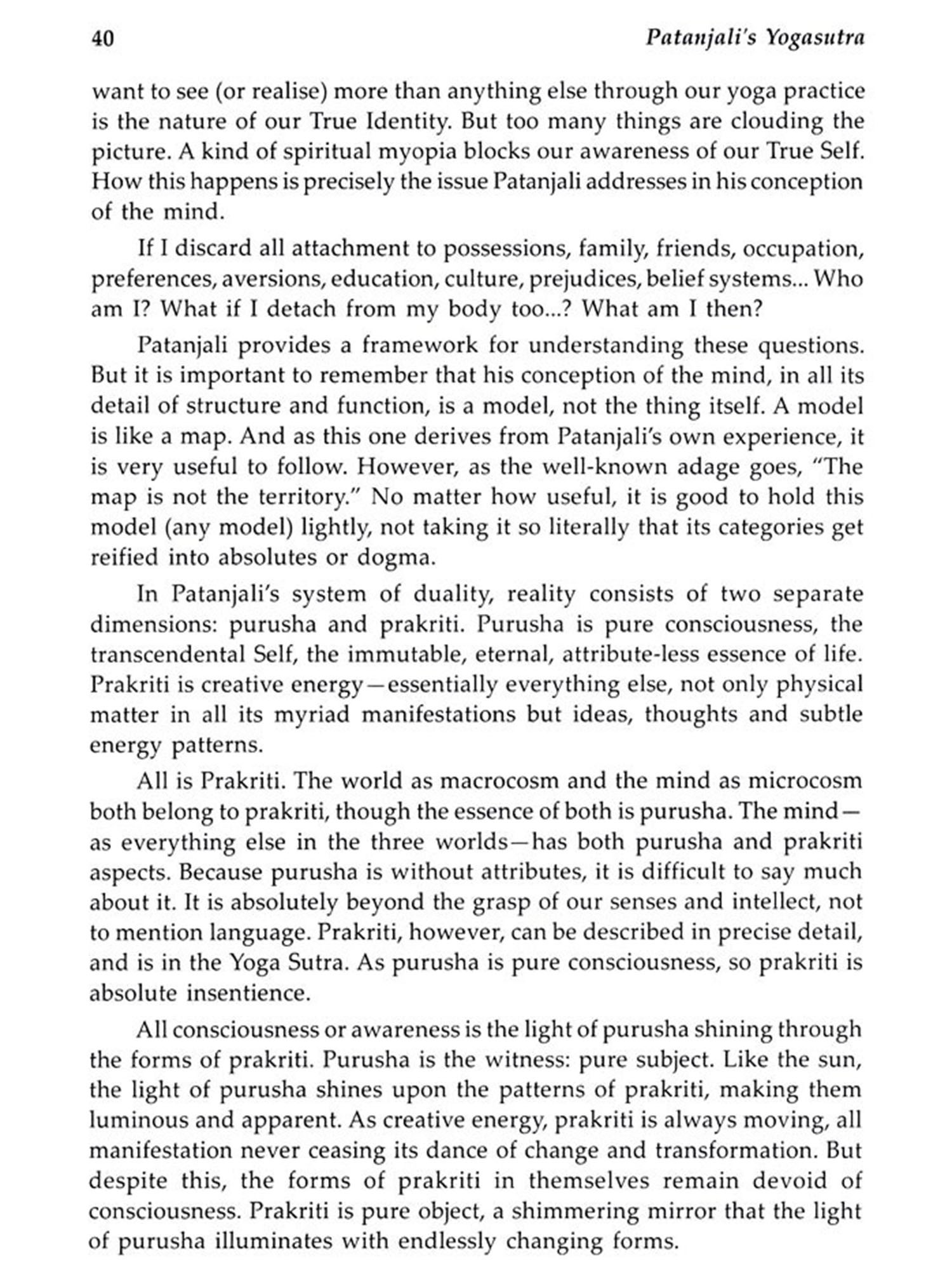 Patanjali's Yogasutra is a cornerstone of classical yoga philosophy, comprising 195 succinct aphorisms that outline the path of yoga. Written around the 2nd century BCE, this text provides profound insights into the practice of yoga, which Patanjali defined as the cessation of the fluctuations of the mind. In doing so, it provides a pathway to inner peace, spiritual awakening, and liberation. The Yogasutra is revered not only as a spiritual guide but also as a practical manual for personal growth and transformation. The Yogasutra is divided into four chapters, each dealing with different aspects of yoga. The first chapter, Samadhi Pada, deals with the nature of the mind and the goal of yoga: achieving Samadhi, a state of complete concentration and absorption. The second chapter, Sadhana Pada, focuses on the practical aspects of yoga, describing the process of self-dicipline and spiritual practice. The third chapter, Vibhuti Pada, elaborates on the powers that can arise through yoga, such as extraordinary mental clarity. The final chapter, Kaivalya Pada, explores the ultimate state of liberation, where one experiences freedom from the material world and attains spiritual enlightenment. One of the most influential teachings of the Yogasutra is the concept of the eightfold path, known as Ashtanga Yoga. This path includes eight key practices: Yama (moral restraints), Niyama (personal observances), Asana (physical postures), Pranayama (breath control), Pratyahara (withdrawal of the senses), Dharana (concentration), Dhyana (meditation), and Samadhi (a state of deep, undisturbed concentration). Through these practices, Patanjali guides practitioners toward mastering the body, mind, and spirit to achieve self-realization and inner peace. The first two aspects of Ashtanga Yoga Yama and Niyama provide the ethical foundation for yoga practice. Yama consists of five moral restraints: non-violence (Ahimsa), truthfulness (Satya), non-stealing (Asteya), celibacy (Brahmacharya), and non-possessiveness (Aparigraha). These principles encourage individuals to live harmoniously with others and the world around them. Niyama consists of five personal observances: cleanliness (Shaucha), contentmen. (Santosha), austerity (Tapas), self-study (Svadhyaya), and devotion to a highe power (Ishvara Pranidhana). These practices help individuals cultivate inne discipline, spiritual growth, and self-awareness. Asana and Pranayama, the third and fourth limbs of the eightfold path focus on the physical and breath practices of yoga Asana refers to the practice of physical postures, which Patardali emphasizes as a means to prepare the body for meditation ard to achieve stillness and strength. These postures help also Pranayama involves controlling the breath, which is seen as the link between the body and mind. By regulating the breath, practitioners can calm the mind, balance energy, and prepare themselves for deeper meditative states, The next three limbs Pratyahara (sense withdrawal), Dharana (concentration), and Dhyana (meditation) - focus on mental control and spiritual practice. Pratyahara involves turning inward, withdrawing attention from external distractions, and focusing on the inner self. Dharana is the practice of concentration, where the practitioner focuses their mind on a single point or object. This leads to Dhyana, or meditation, where the practitioner enters a deeper state of awareness and connection to the divine or universal consciousness. These practices allow for an increased sense of inner calm and spiritual clarity. The ultimate goal of the Yogasutra, as outlined in the final chapter, Kaivalya Pada, is the attainment of Kaivalya, or liberation. This state is described as a transcendence of the material world and the ego, leading to self-realization and a deep, unshakable peace. Achieving Kaivalya requires the practitioner to go beyond the fluctuations of the mind and to transcend the dualities of pleasure and pain, success and failure. Patanjali describes Kaivalya as the state where the individual soul (Purusha) is liberated from the cycles of birth and rebirth, experiencing oneness with the universal consciousness. Patanjali's Yogasutra continues to serve as a profound guide for individuals seeking to understand themselves, their purpose, and their connection to the universe. The text offers both practical advice and spiritual insights, making it relevant for modern practitioners of yoga, meditation, and mindfulness. Its teachings emphasize the importance of self-discipline, mental clarity, and spiritual growth, helping individuals achieve harmony between the body, mind, and spirit. The timeless wisdom contained in the Yogasutra remains a foundational resource for anyone on the path to self-realization and inner peace. In this work, Patanjali presents the essence of yoga, providing a systematic pproach to self-discipline, mental control, and ultimate liberation through a eries of concise aphorisms that continue to inspire yogic practitioners and spiritual eekers worldwide.