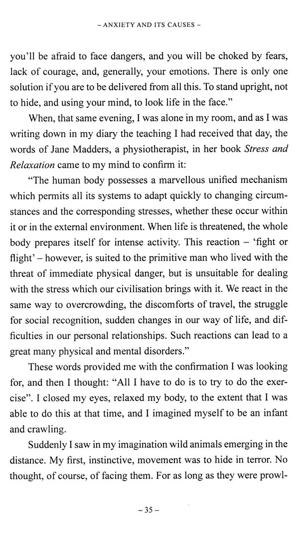 Her aim in writing the book is to describe the path she followed in order to overcome her phobias, a path that she continued to follow to attain her spiritual development.