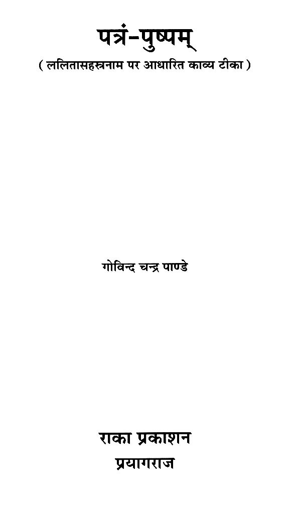 पत्रं-पुष्पम् (ललितासहस्त्रनाम पर आधारित काव्य टीका): Patra-pushpam (Poetic Commentary Based on Lalitasahasranama)