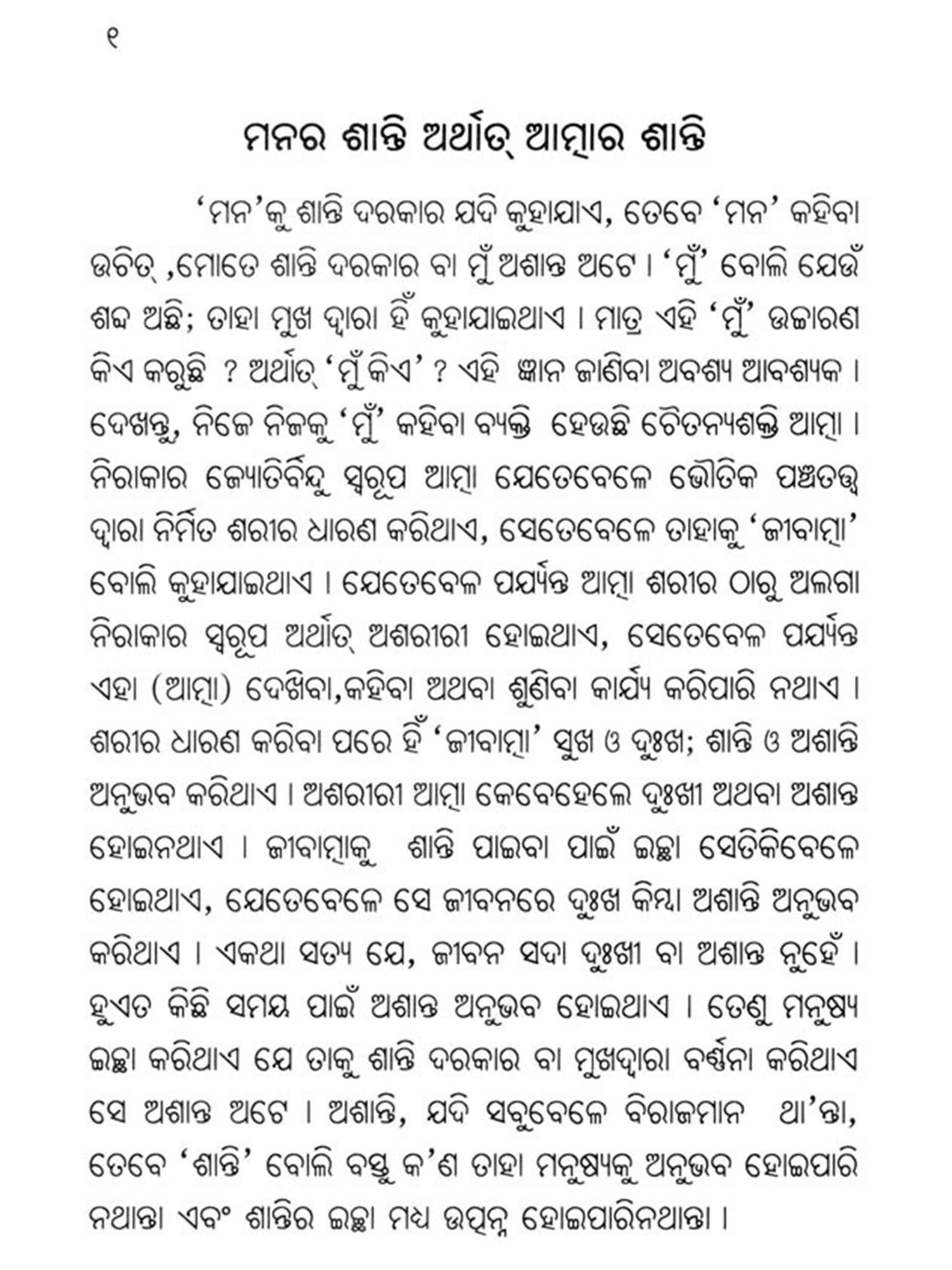 ବ୍ରହ୍ମଜ୍ଞାନ ବା ଶାନ୍ତିମୟ ଜୀବନ- Spirituality or Peaceful Life (Oriya)