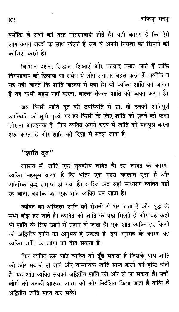 आज का व्यक्ति आंतरिक युद्ध, एक आंतरिक अराजकता की स्थिति में है, क्योंकि वह पूरी तरह से एक भ्रम का शिकार है। व्यक्ति को शांति प्राप्त करने के लिए अपने भीतर की इस अराजकता को दूर करना होगा। लेकिन अगर कोई उस व्यक्ति को सांत्वना देता है, तो यह उसे दुश्मन जैसा मानने जैसा है क्योंकि सांत्वना समय की बर्बादी है और यह शांति की ओर नहीं ले जाती।