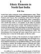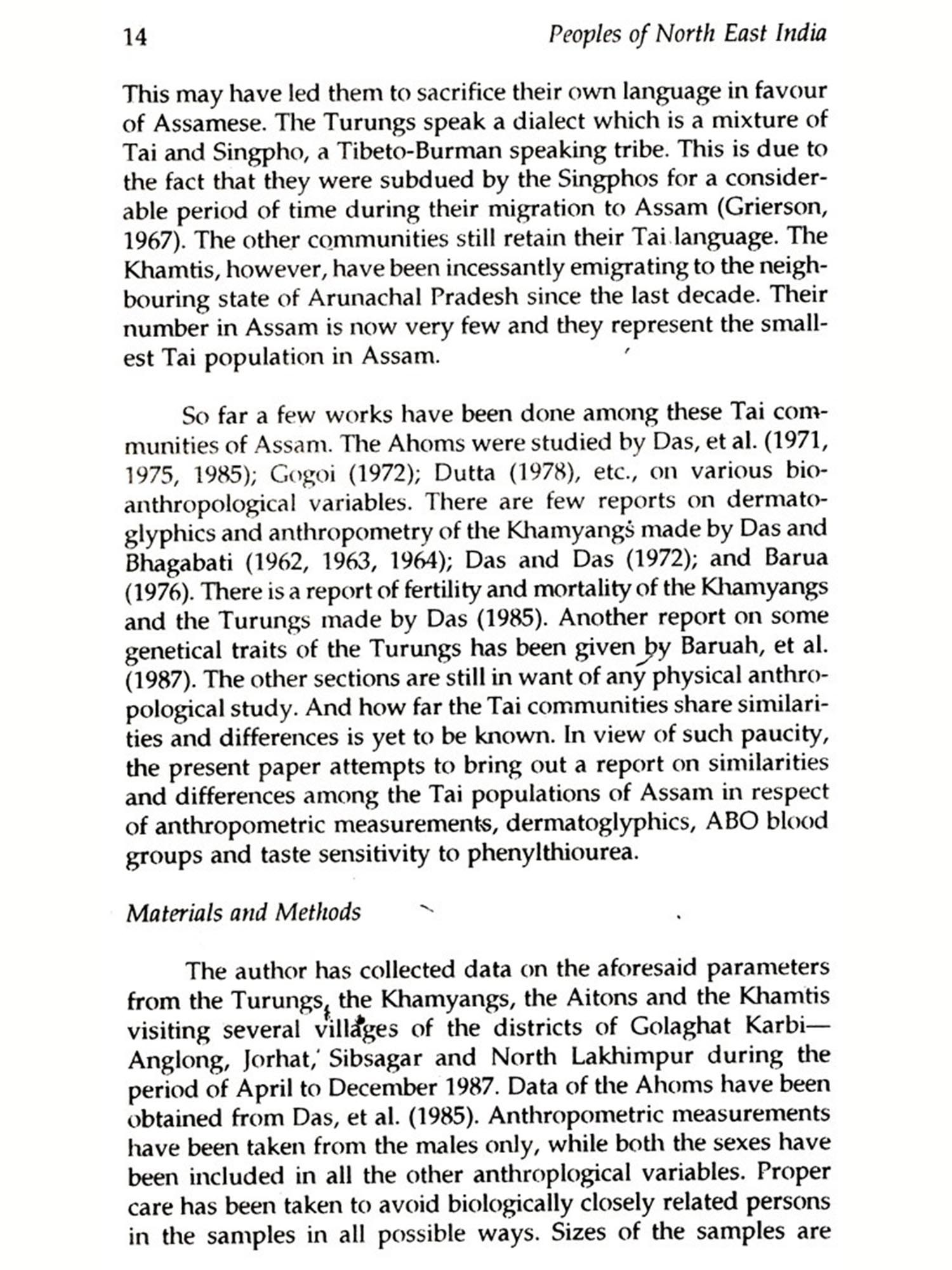 North East India, the erstwhile greater Assam, presently the land of seven sister States is very often called an 'anthropological museum' for her providing shelter to numerous populations of various ethnic affiliation, having different social structure and cultural heritages.