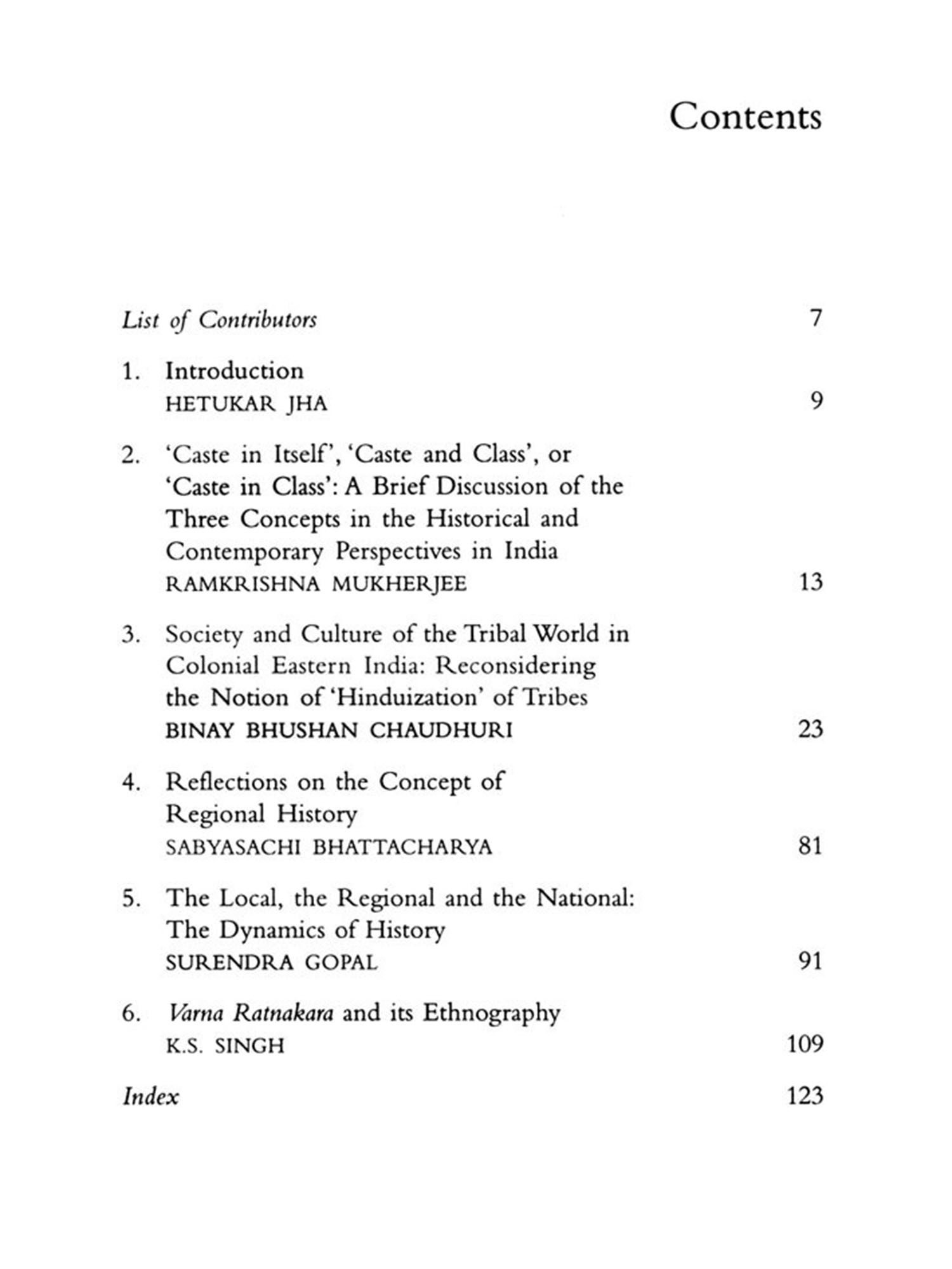 The social sciences and history have a fairly long and vibrant tradition in India. Systematic and thoughtful probes into the complexities of life and living conditions are constantly made from the different perspectives of these disciplines. However, it seems to be quite desirable that such perspectives should be periodically subjected to critical appraisal in order to assess their validity and relevance. This exercise involves the task of scrutinizing the significance and efficacy of the 'concepts' held crucial in the discourses of these disciplines. These concepts form part of the battery of tools used for exploration, understanding, explanation and interpretation of social and historical facts. The way such concepts are understood and used reflects their underlying perspectives that implicitly or explicitly guide the perception of socio-historical reality. A critical examination of these concepts may, therefore, reveal the status of the perspectives incorporating them in terms of their capacity of comprehension and appropriateness. This volume is chiefly devoted to this task and presents the contributions of distinguished social scientists and historians with insightful discussions and analysis of 'caste', 'class', 'tribe', their inter-relationship, and of 'region' as well as the approach of 'regional history'.