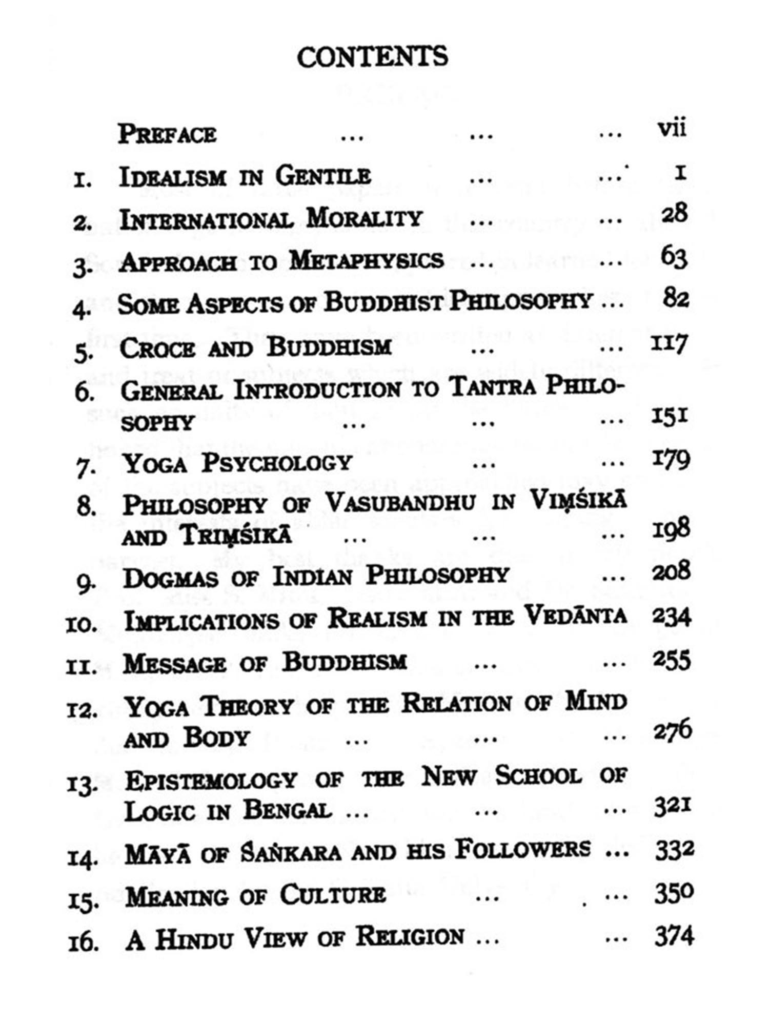 Most of these papers were read before Inter-national gatherings, either in this country or abroad. Some of them, however, appeared in learned journals, and there are one or two which appear here for the first time. They have been written at different times and treat of subjects which are widely different. As such no unity of thought can be claimed. But it is hoped that the unconventional manner in which many of the subjects have been approached may stimulate the interests of abler scholars for reaping a better harvest. My best thanks are due to my pupils, Prof. Miss S. Mitra, Sästrī, M.A. and Dr. Satindra N. Mukherjee, M.A., Ph.D., and Dr. S. B. Dasgupta, M.A., Ph.D., Lecturer, Calcutta University, for very kindly revising the proofs. My best thanks are also due to my friend, Dr. Syamaprasad Mookerjee, M.A., D.Litt. (Hon.), Bar.-at-Law, President, Post-Graduate Council in Arts for the kind interest that he took in the work which eventually led to its publication by the Calcutta University